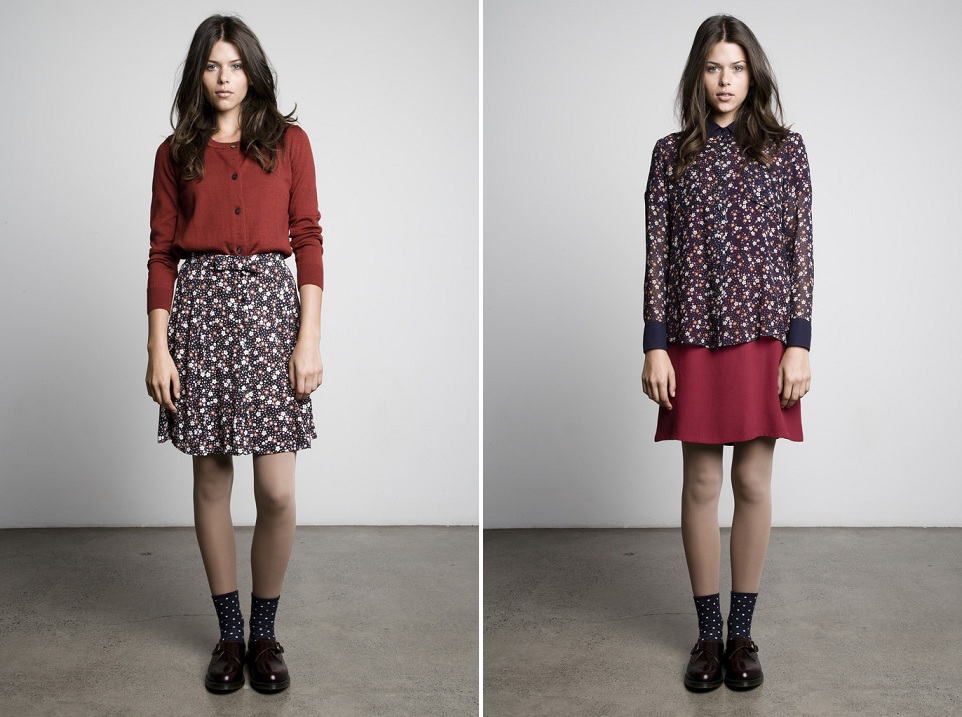 Lately I’ve been really drawn to plainer outfits, maybe a little less frilly, and a little on the darker side. Maybe it’s just the season, or maybe it’s me getting older, and feeling like the way I dress should reflect that a little bit. Whatever the reason, though, labels like Twenty Seven Names just seem, to me, to tie the girly in with the grown up absolutely seamlessly. Pairing sweaters with flouncy full skirts, and making more masculine collared shirts in perfect tiny polka dot prints.