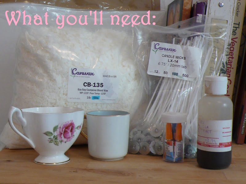 • Any container that can handle heat (my favourite ones are teacups and mason jars, but it can be really fun to go to thrift stores and see what other cool receptacles you find!)