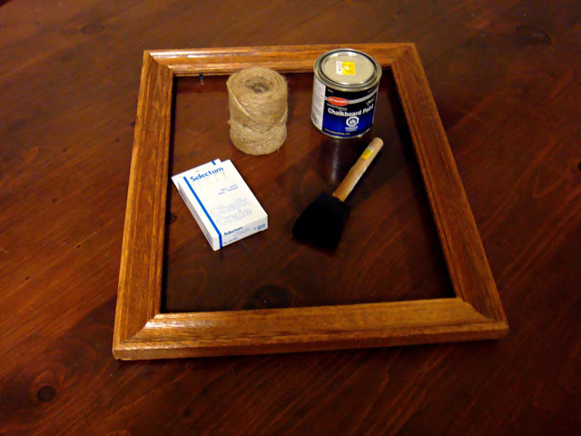 My original thought (and still something I would like to do) was to find an old cupboard door, mark off a rectangle in the centre with painters tape and paint the inside of that rectangle. Unfortunately, I had no success finding this cupboard door (curse you!), so I scrapped that idea and decided to use an old picture frame and just paint the glass. So here is a little tutorial on making a old picture frame into a new chalkboard!