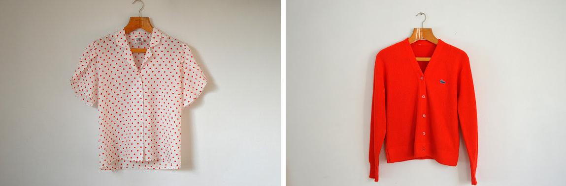 5. Vintage 80’s Red and White Polka Dot Blouse……………..6. Vintage 80’s Red Lacoste Cardigan