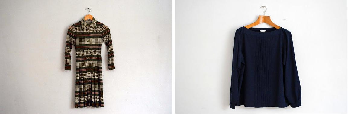 3. Vintage 70’s Houndstooth Daydress………………….. 4. Vintage 90’s Navy Longsleeve Blouse w/pleated front