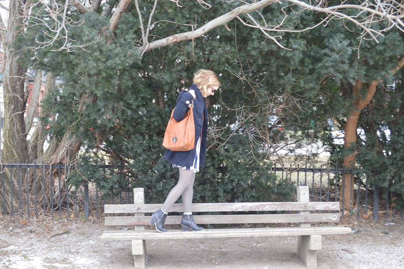 We did manage to fit some thrifting into the mix, and found some items we’re pretty excited to list in the coming weeks (including a few Spring things!). While we were out, we figured we’d take some photos for the blog, since it’s hard to be motivated to get out of the house once we’re warm and cozy. So, we stopped at Dufferin Grove, a park right by where each of us used to live before we lived in Parkdale. It’s a lot nicer when there isn’t construction all around….you’ll have to excuse the beautiful neon orange cones and fences …
