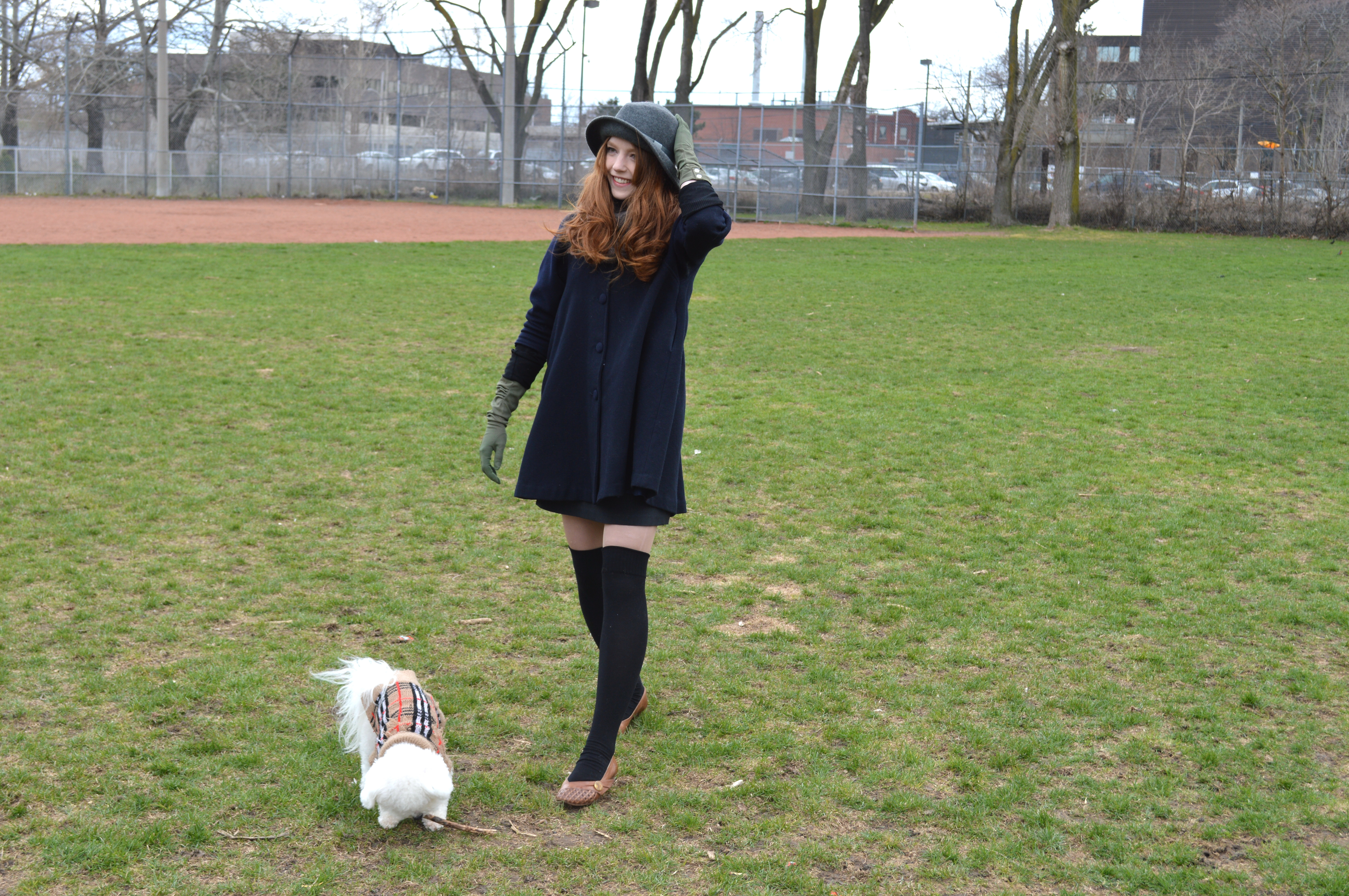 Despite the cold on Saturday we spent some time letting Gus do his thing, and letting me be silly for the camera. It was probably the worst day to be wearing a hat (wind!!!), but well, we know how I feel about hats as of late. The wind will not thwart my efforts to be a hatted dame.