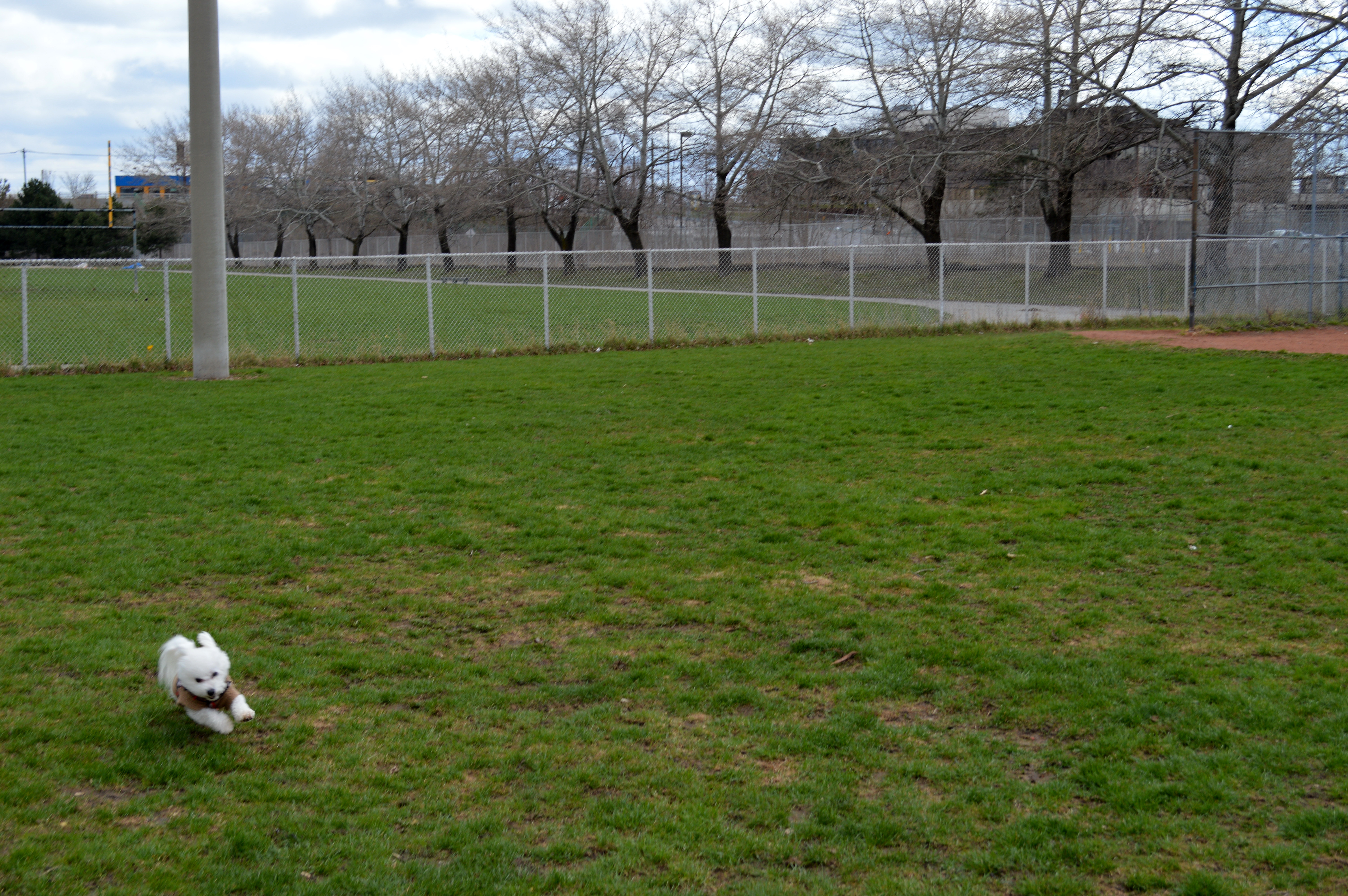 With no snow on the ground, it means a lot more time spent at the park with Gus, and less time watching him lose the ability to use his wee legs and tip over like he has been paralysed. Since his surgery, it’s really been difficult getting him back into the swing of things. He was a dog who absolutely loved off-leash parks and playing with other pups. But after his surgery (and once the snow was gone), he just seemed so timid. He’d stick by my legs and was not the Blitzing Bichon that we all know and love. Thankfully, with Matt having some time off work, he’s been a great papa and brings him to the park almost daily. I got to see him live in action this weekend just sprinting around the park, and I couldn’t have been more pleased.