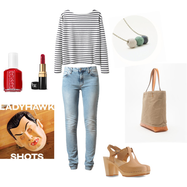 1. Essie Nail polish … 2. Chanel Gabrielle red Lipstick … 3. Wood Wood Adrien Striped Top … 4. Southern Field Industries waxed canvas tote …