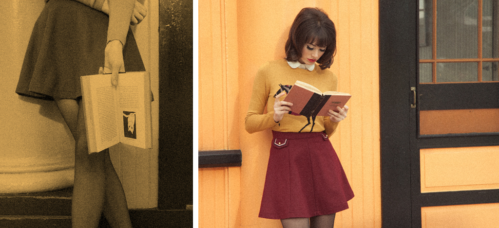 While browsing the Dear Creatures website, I was pleased to see they have released their Autumn/Winter 2013 campaign: Girl About Town. As usual, and surprising no one (certainly not me), it’s ever so lovely. The hair (omg, kind of makes me want to take a pair of scissors to my head), giant eye lashes, bright red lips and vintage inspired garb, sets the mood for a sultry 1960’s ice cream eating bookworm babe running around New York City. This gal here is more than meets the eye – she’s always happy to be on the move alone, kind of quiet, to the point where she may seem disinterested, but get to know her and she’s an impeccably charming gal with a weird sense of humor. She’s perpetually surprising. She can change a car tire and snorts when she laughs.