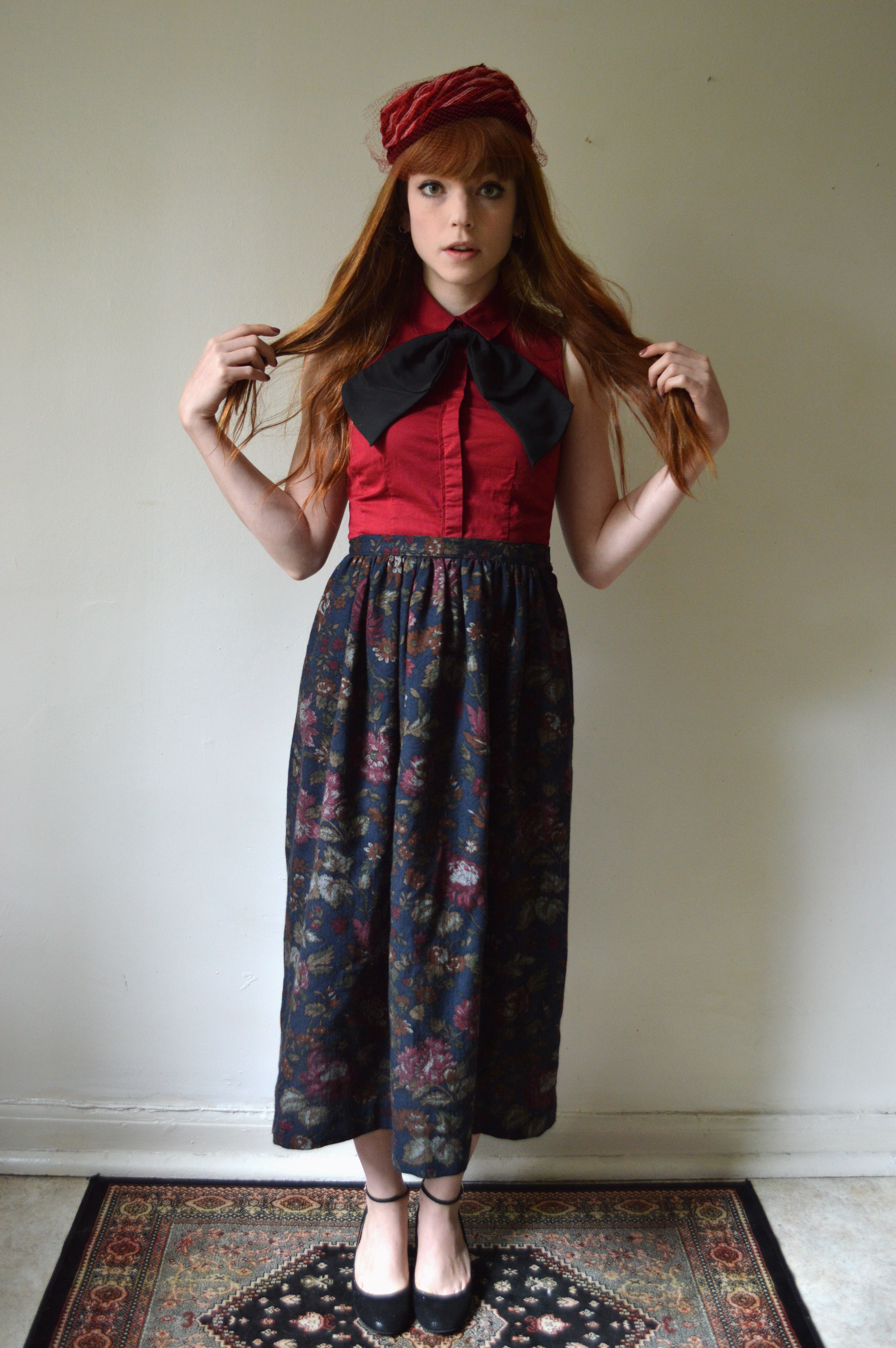 1….1980’s High Waisted Wool Floral Tapestry Skirt (S)