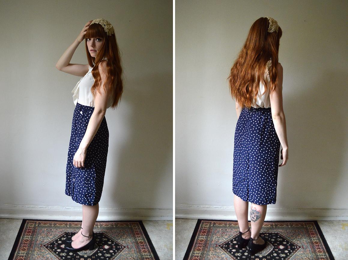 edit33….1970’s Navy & Polka Dot Nautical High Waisted Skirt (S/M)