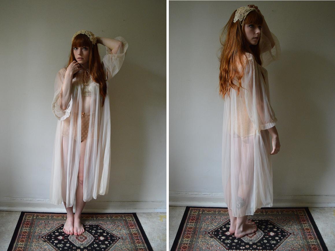 edit55….1960’s Pale Pink Sheer Lace House Coat (one size fits all)