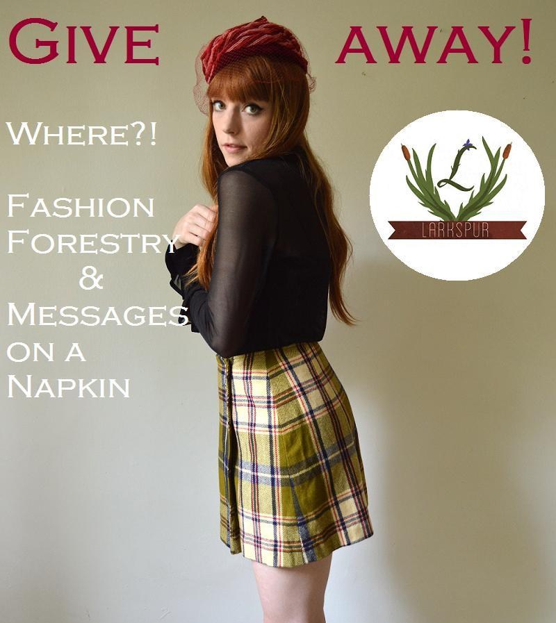 Hello all! I’m excited to announce I’ve got a couple giveaways going on this week. I have teamed up with both Fashion Forestry and Messages on a Napkin to offer their lovely readers (as well as yourselves), a $50 shop credit. That’s right! One for a FF reader, and one for a MoaN reader! I’m also offering a 15% discount to Fashion Forestry readers, just enter coupon code LARKSPURFORESTRY.