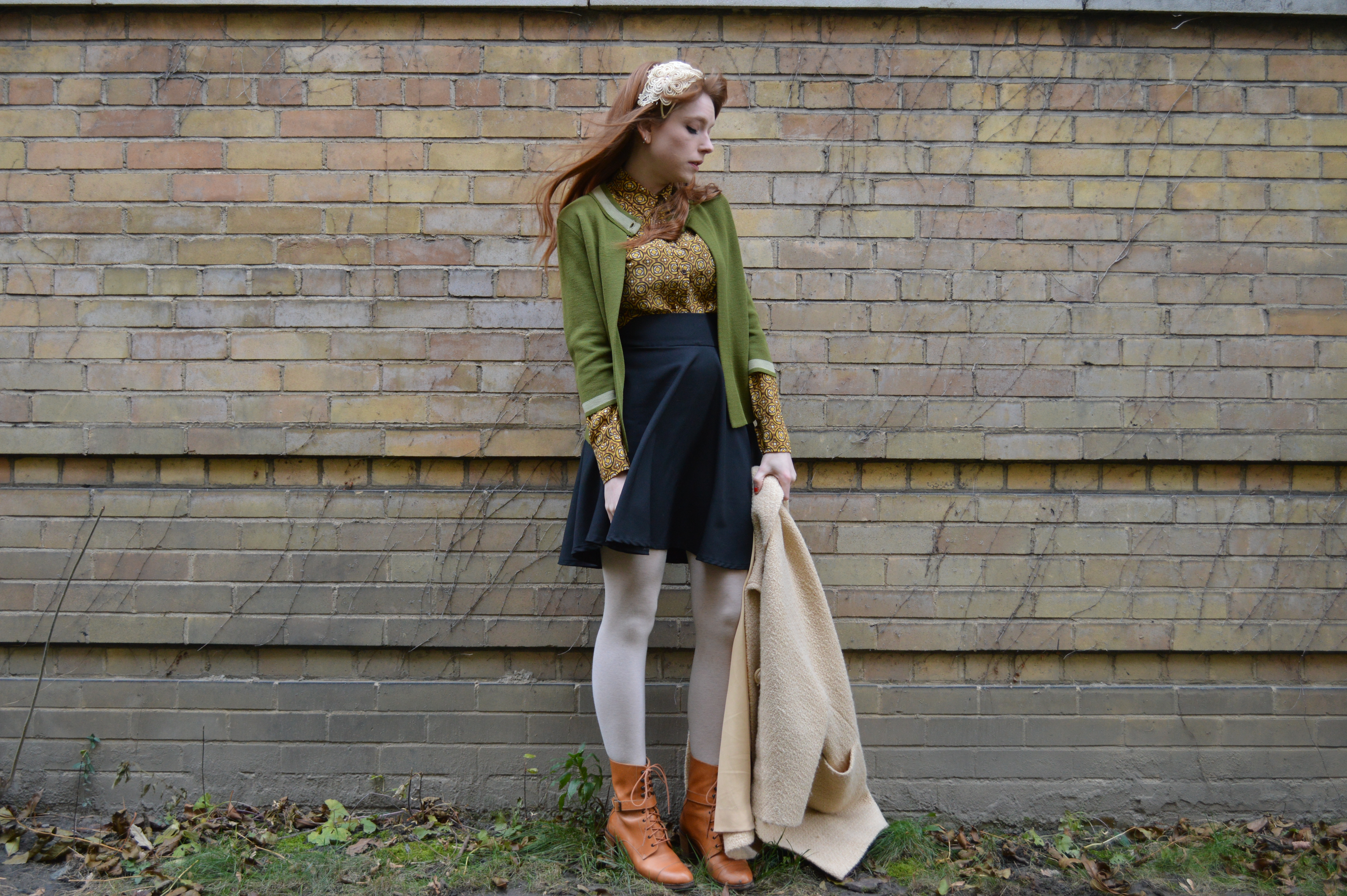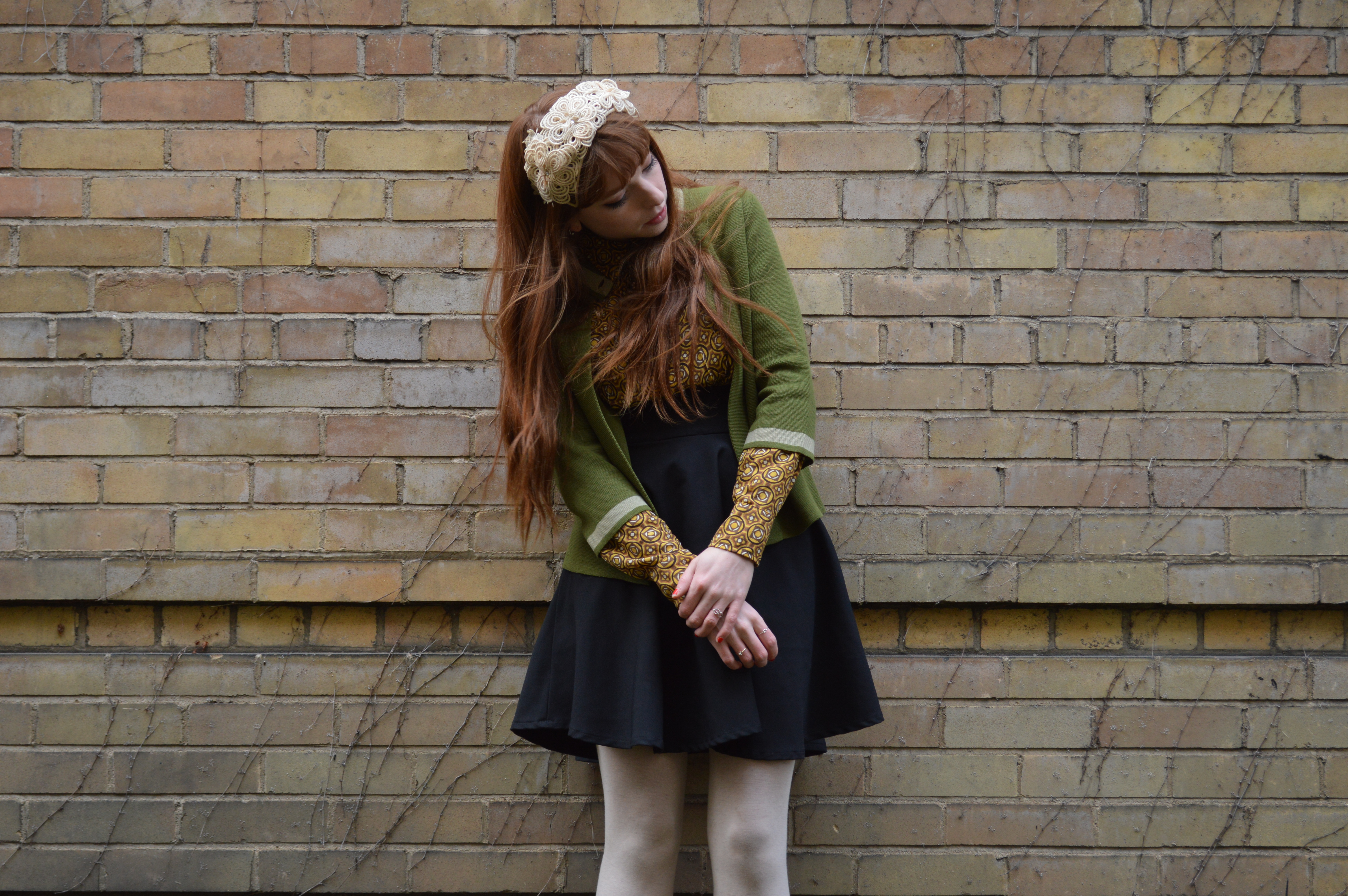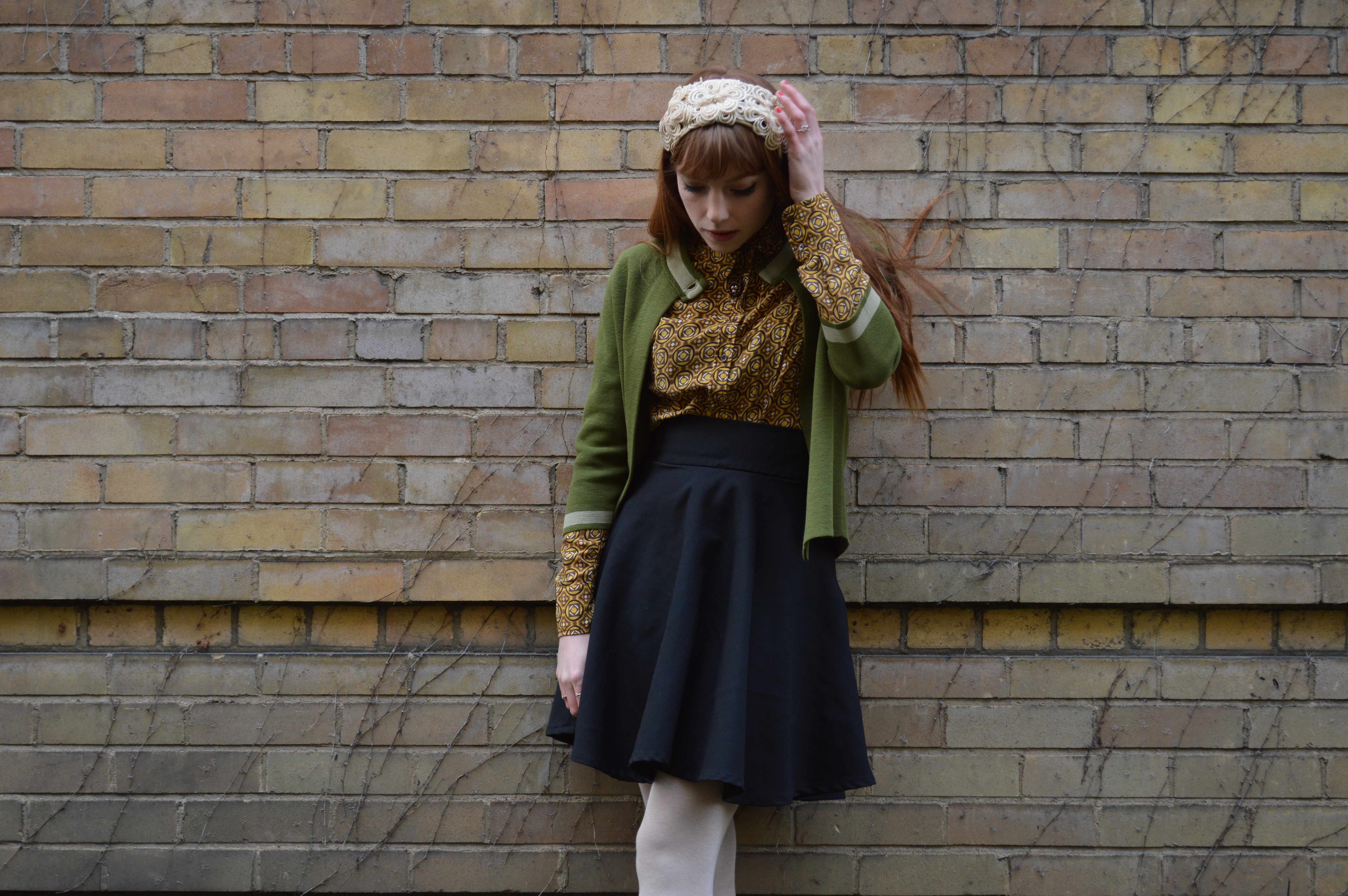 On a more fashion related note, I have a love/hate relationship with this 1960’s cardigan. It’s so very Jackie O and glorious, but I have always been at a loss when it comes to pairing it with something in my closet. It can end up looking very stuffy and secretarial in a really bad way. Alas, this particular chilly morning I think I found a life mate in this thrifted Joe Fresh button up. I had no idea what a valued purchase this button up would be. I’m like a broken record here, but I love prints, which is why I purchased it without any real thought as to what would look nice with it (this is how I buy most things). It goes with more in my wardrobe than I could have ever imagined. So good job to you, Joe Fresh (minus all the controversial shit. shame on you for that).