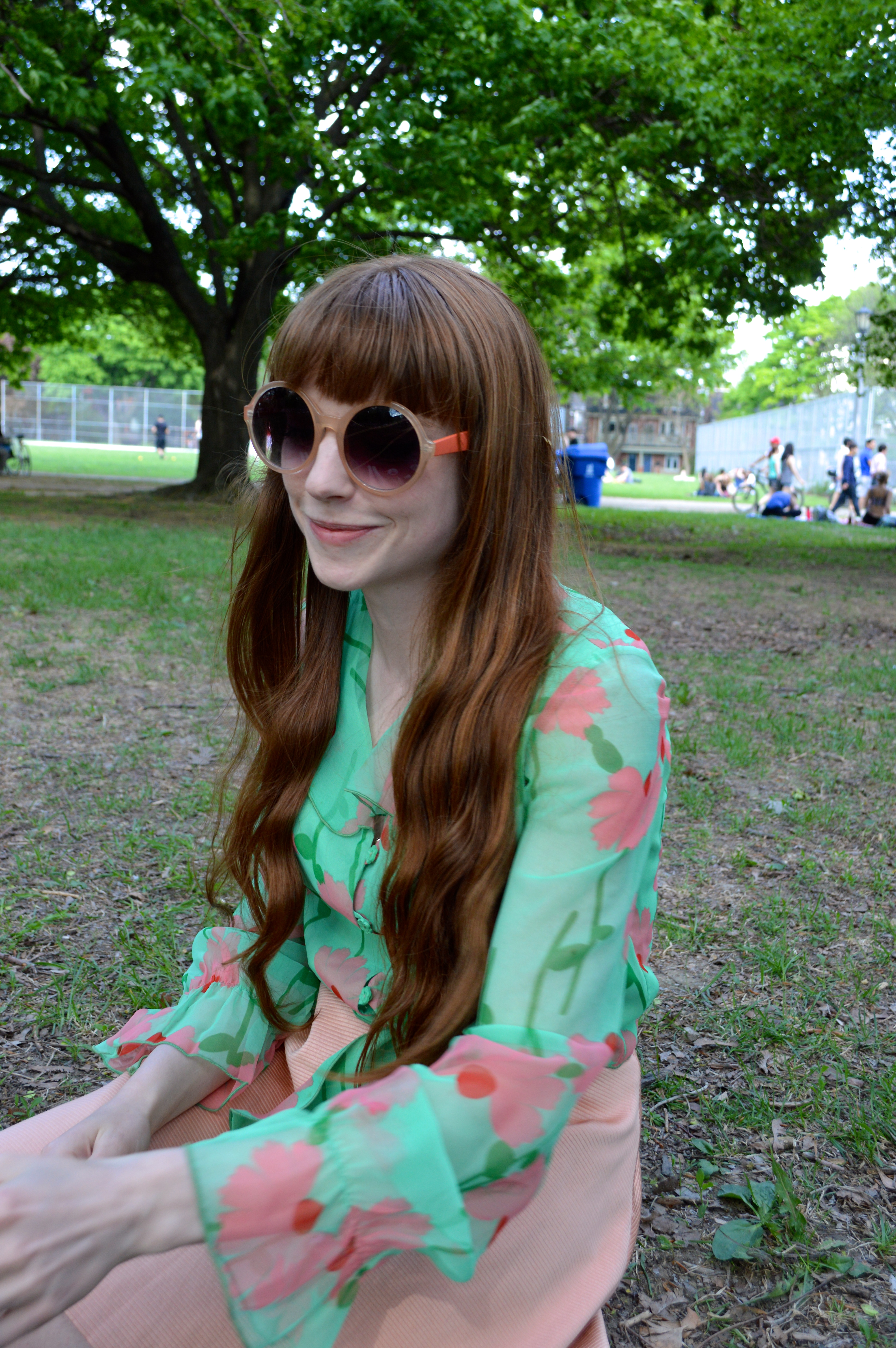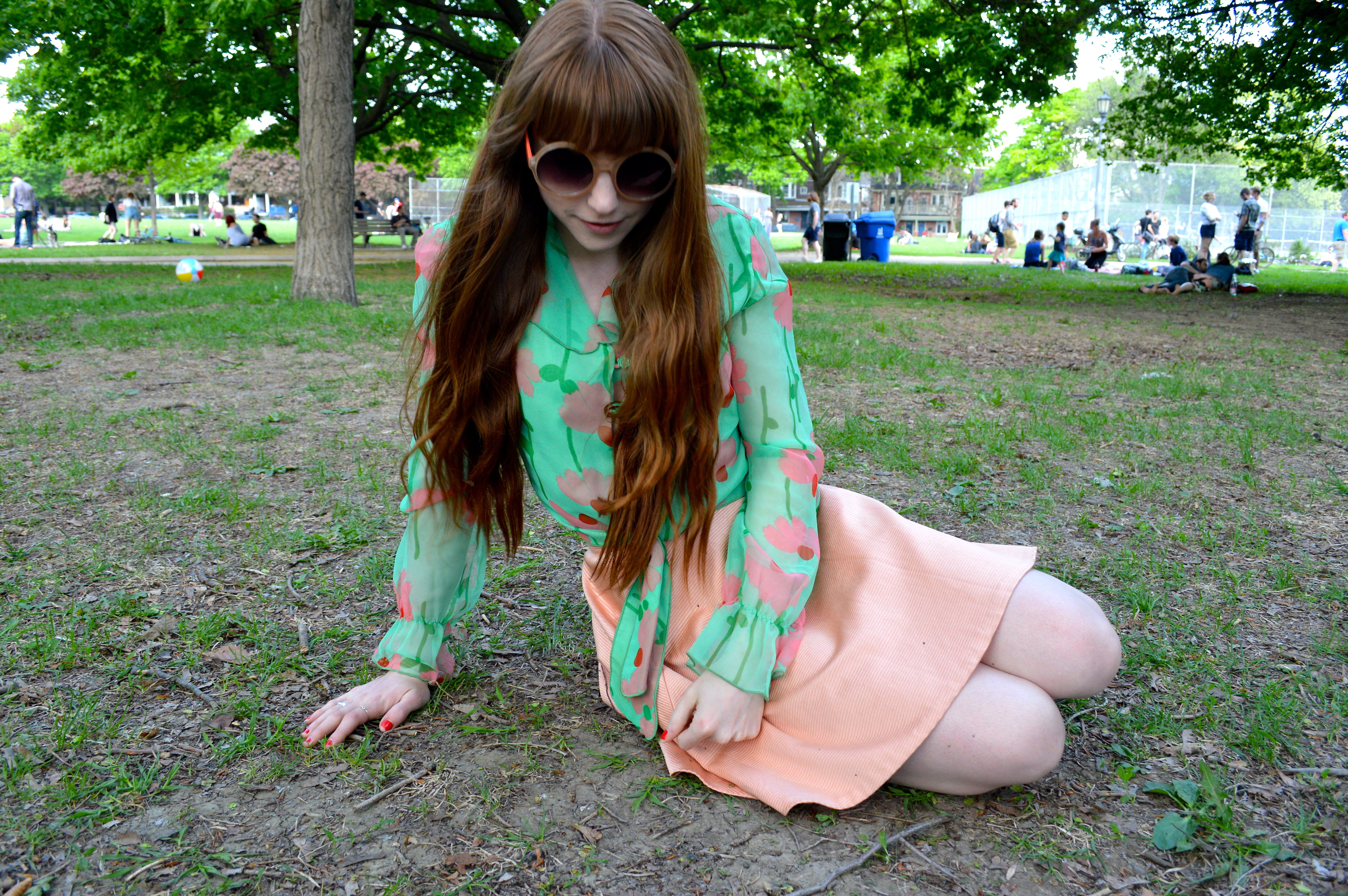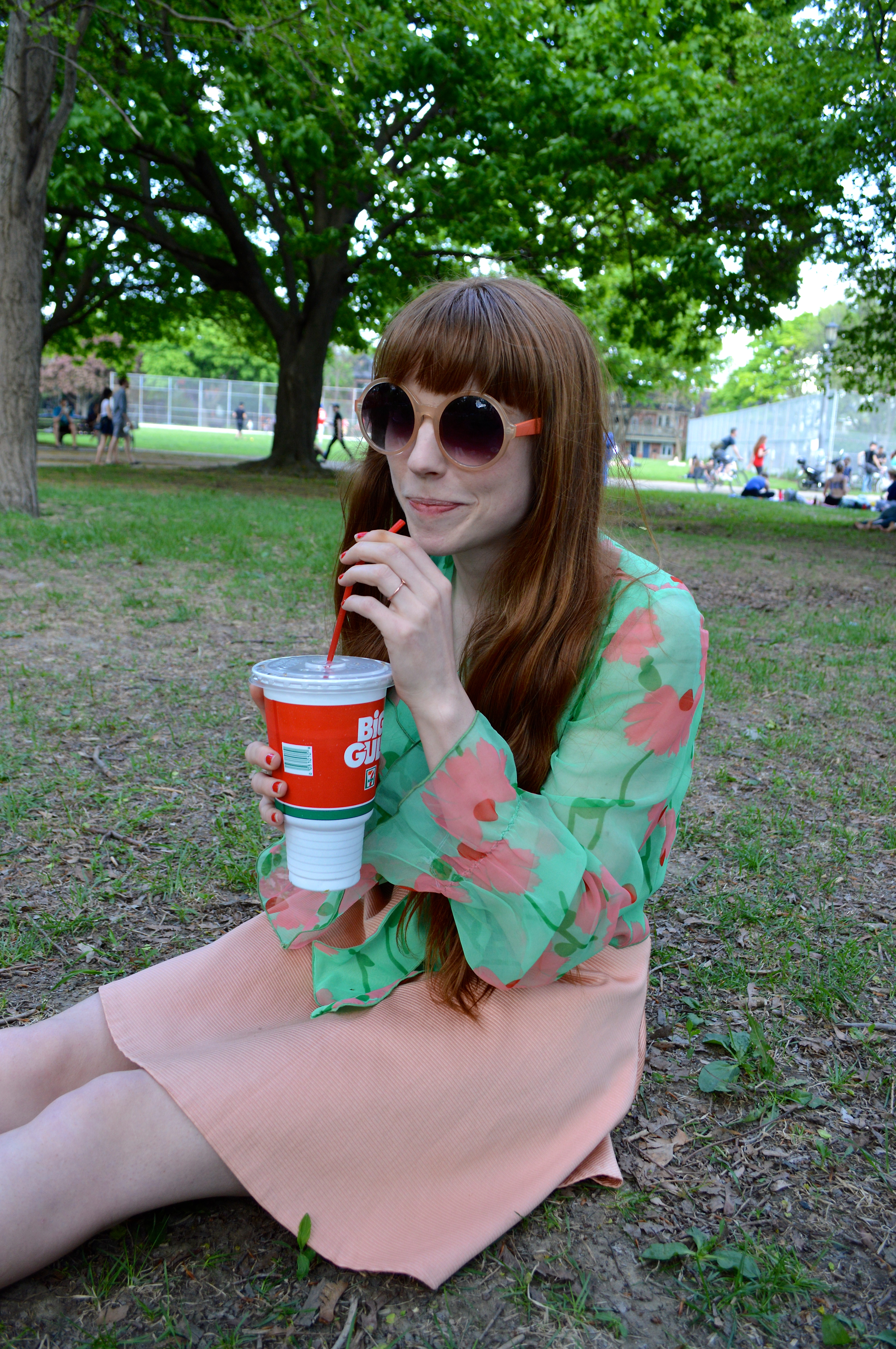 DSC_3067So I have been quite ill for 2 weeks without really knowing it for the first week when I started to feel a tremendous amount of pain in my side. And while I feel very lucky to live in a country with free healthcare and receive benefits from my day job that help pay for medications etc, it sometimes makes me skeptical about our healthcare system and the way walk-in clinic doctors treat patients. I’m sure things would have been different had I my own doctor, but I’m sometimes bad at being an adult and never got around to doing that. However, this situation has made me realize the importance of finding my own doctor, as well as really taking care of myself. I like to think of most tough situations in life as a sign, or lesson in something I should consider more often. In this case, I’m working hard at not pushing myself too hard, not stressing myself out so much, and just leading a more relaxed, healthy lifestyle so all other things fall into place. I’m not sure who decided we had to rush through life each and every day, but I am and have been guilty of this for years. Our frame of mind effects more than just our moods, in this specific case, I think my frame of mind was the very reason I became ill. But, despite all this, and once a very kind and wonderful person helped me get the medication and treatment I needed, things started to feel much better, both mentally and physically. Ryan and I spent most of yesterday outside at Trinity Bellwoods Park, drinking Big Gulp (mine was actually just Dr. Pepper), taking pictures, chatting and wearing some new favorite pieces that make me feel perfectly 60s/70s flower power/go-go dancing/school girl/obnoxiously bright vibes. Thing are on the up, for sure, and I’m lucky to have such a handsome dude that makes me smile even when I’d rather be crying from pain.