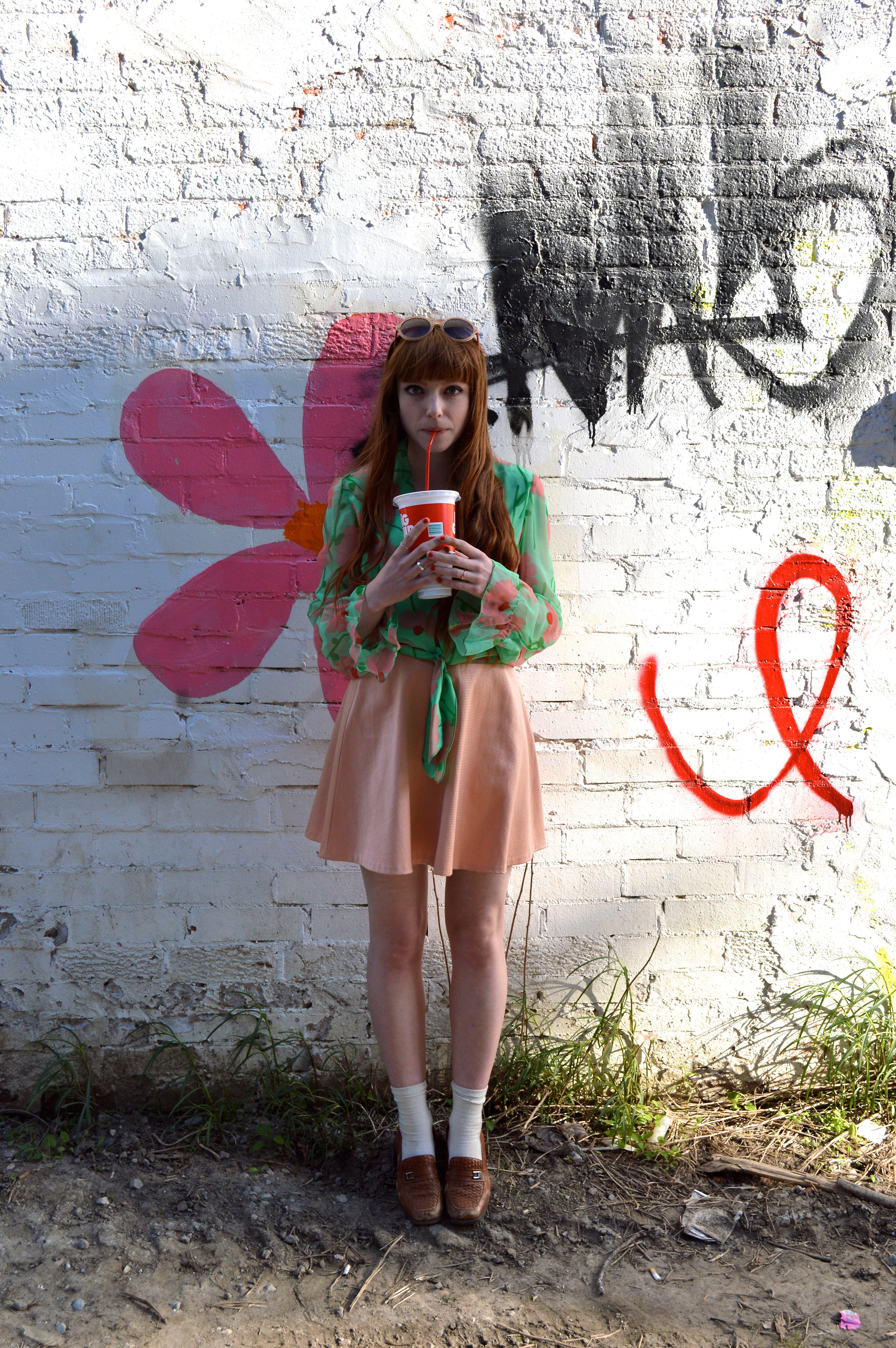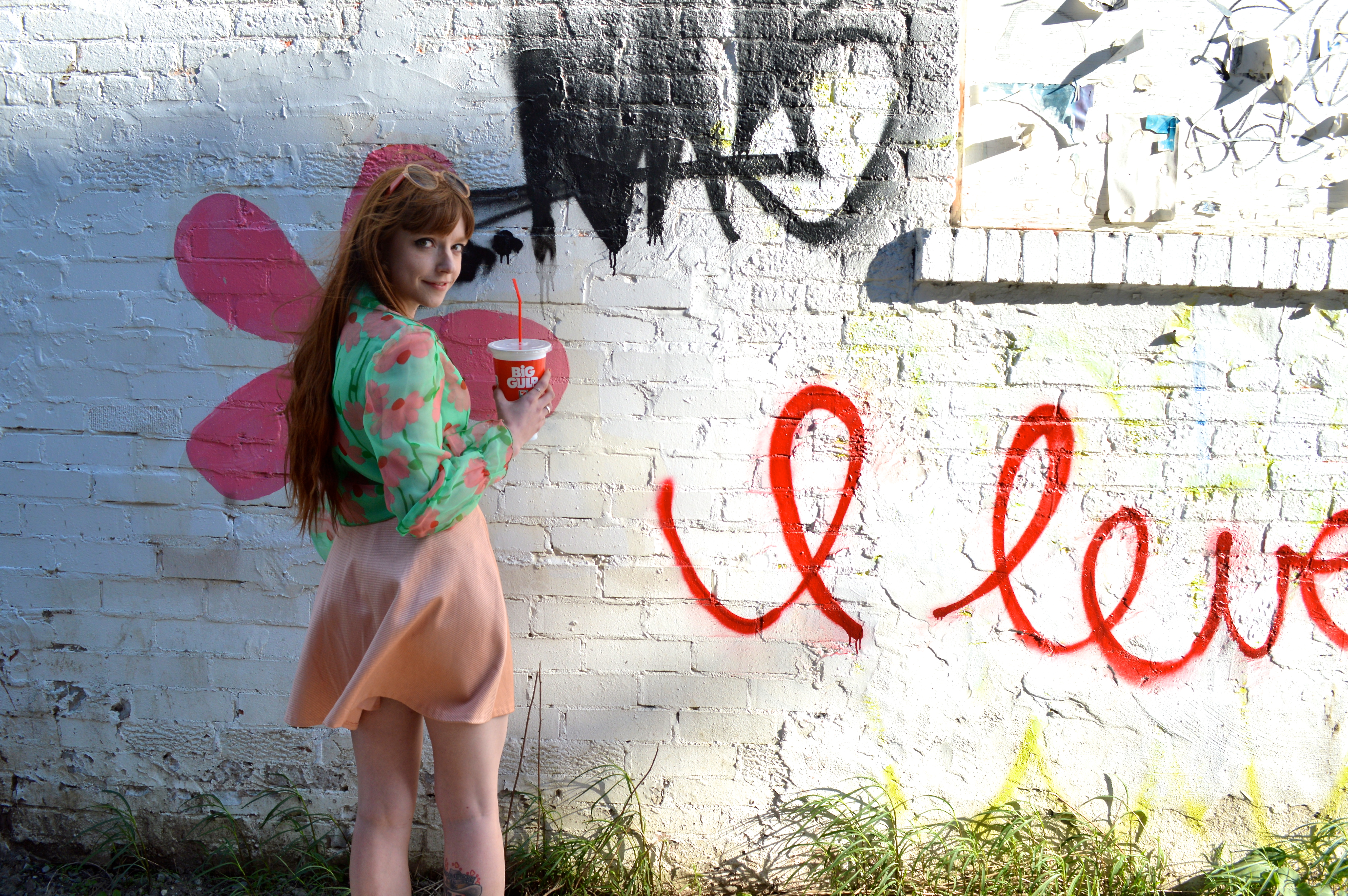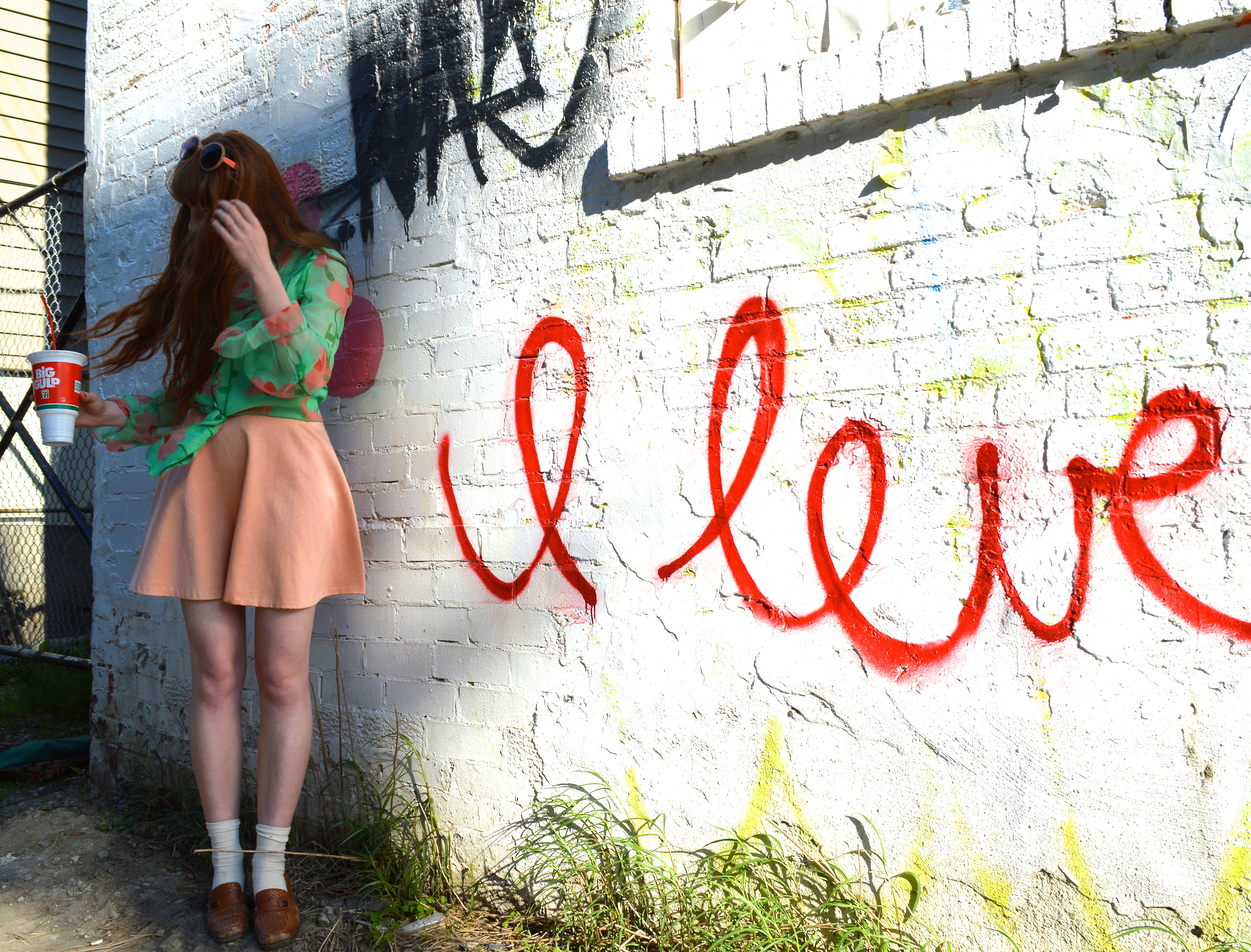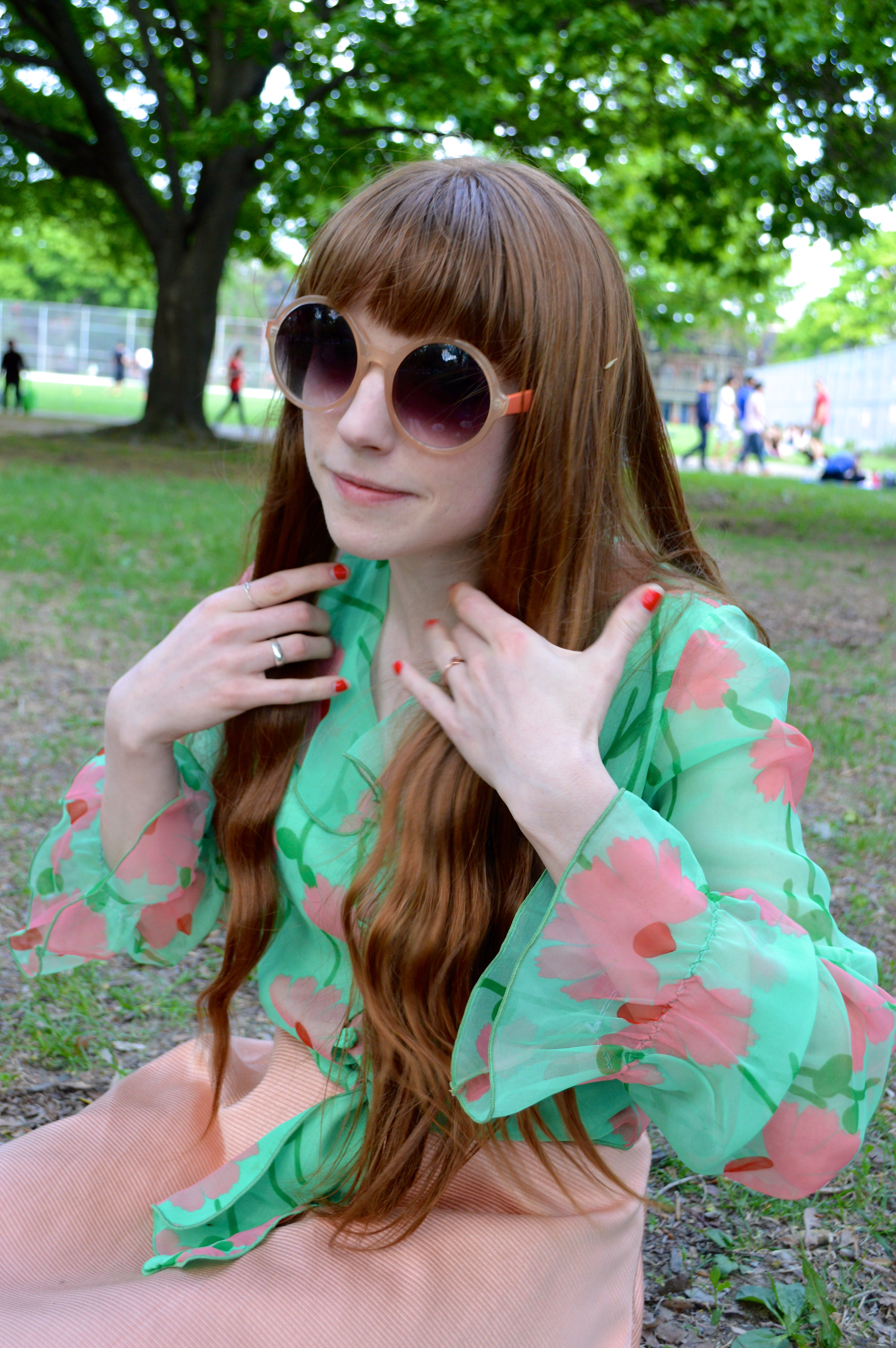 DSC_3067So I have been quite ill for 2 weeks without really knowing it for the first week when I started to feel a tremendous amount of pain in my side. And while I feel very lucky to live in a country with free healthcare and receive benefits from my day job that help pay for medications etc, it sometimes makes me skeptical about our healthcare system and the way walk-in clinic doctors treat patients. I’m sure things would have been different had I my own doctor, but I’m sometimes bad at being an adult and never got around to doing that. However, this situation has made me realize the importance of finding my own doctor, as well as really taking care of myself. I like to think of most tough situations in life as a sign, or lesson in something I should consider more often. In this case, I’m working hard at not pushing myself too hard, not stressing myself out so much, and just leading a more relaxed, healthy lifestyle so all other things fall into place. I’m not sure who decided we had to rush through life each and every day, but I am and have been guilty of this for years. Our frame of mind effects more than just our moods, in this specific case, I think my frame of mind was the very reason I became ill. But, despite all this, and once a very kind and wonderful person helped me get the medication and treatment I needed, things started to feel much better, both mentally and physically. Ryan and I spent most of yesterday outside at Trinity Bellwoods Park, drinking Big Gulp (mine was actually just Dr. Pepper), taking pictures, chatting and wearing some new favorite pieces that make me feel perfectly 60s/70s flower power/go-go dancing/school girl/obnoxiously bright vibes. Thing are on the up, for sure, and I’m lucky to have such a handsome dude that makes me smile even when I’d rather be crying from pain.