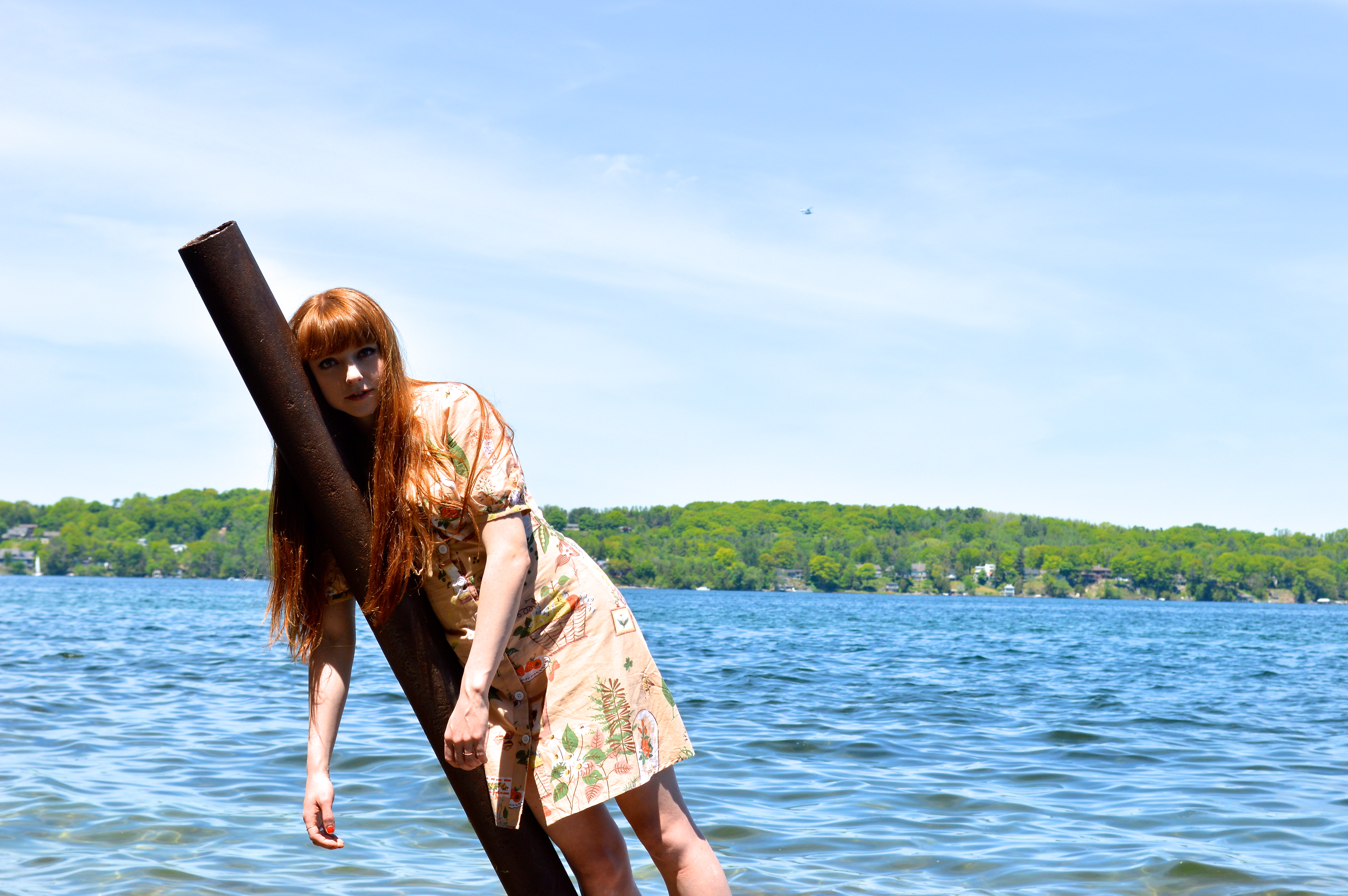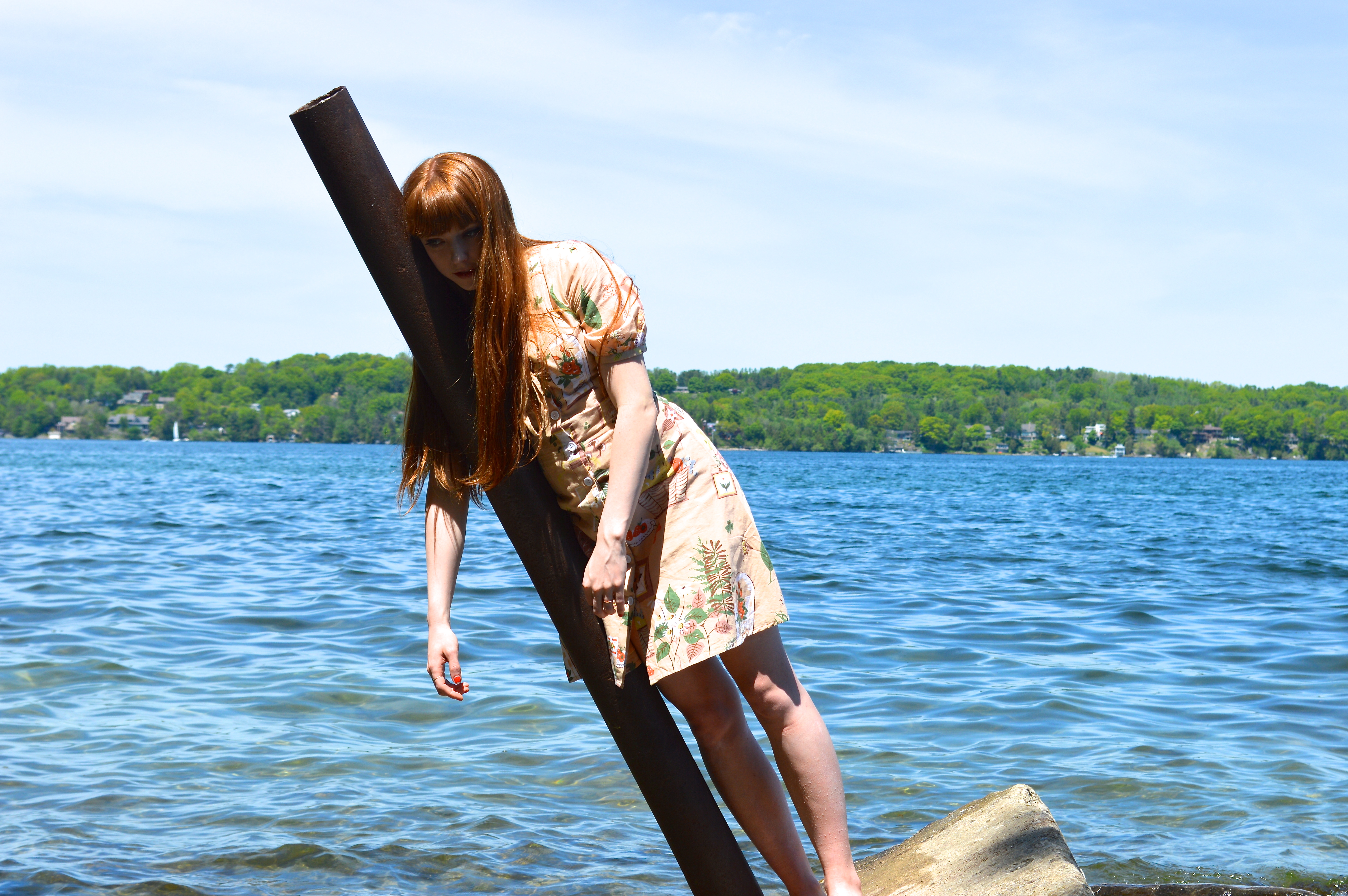 DSC_3128Sometimes it’s necessary for me to get out of the city. I do love Toronto (like really really do) but my mind and body often crave the slowness, fresh air, and silence that north of the city has to offer. Luckily for me, Ryan’s family lives in Barrie, in a beautiful home with ample outdoor space and a very short walk to the waterfront and forest. Ryan and I made the most of our weekend by doing pretty well nothing, which felt perfect. And I was excited to get this Family Affairs, Swedish Summer dress in the mail from Nina about a week or two before. It was the perfect dress for this particular day – lightweight, summery and fun. It’s one of those dresses that doesn’t really need styling – the print is so awesome and the cut is so cute, it’s a piece that can stand on it’s own, in my opinion. I like over the top and complicated sometimes, but I also really like simplicity, as long as I stay true to my silly, quirky nature.