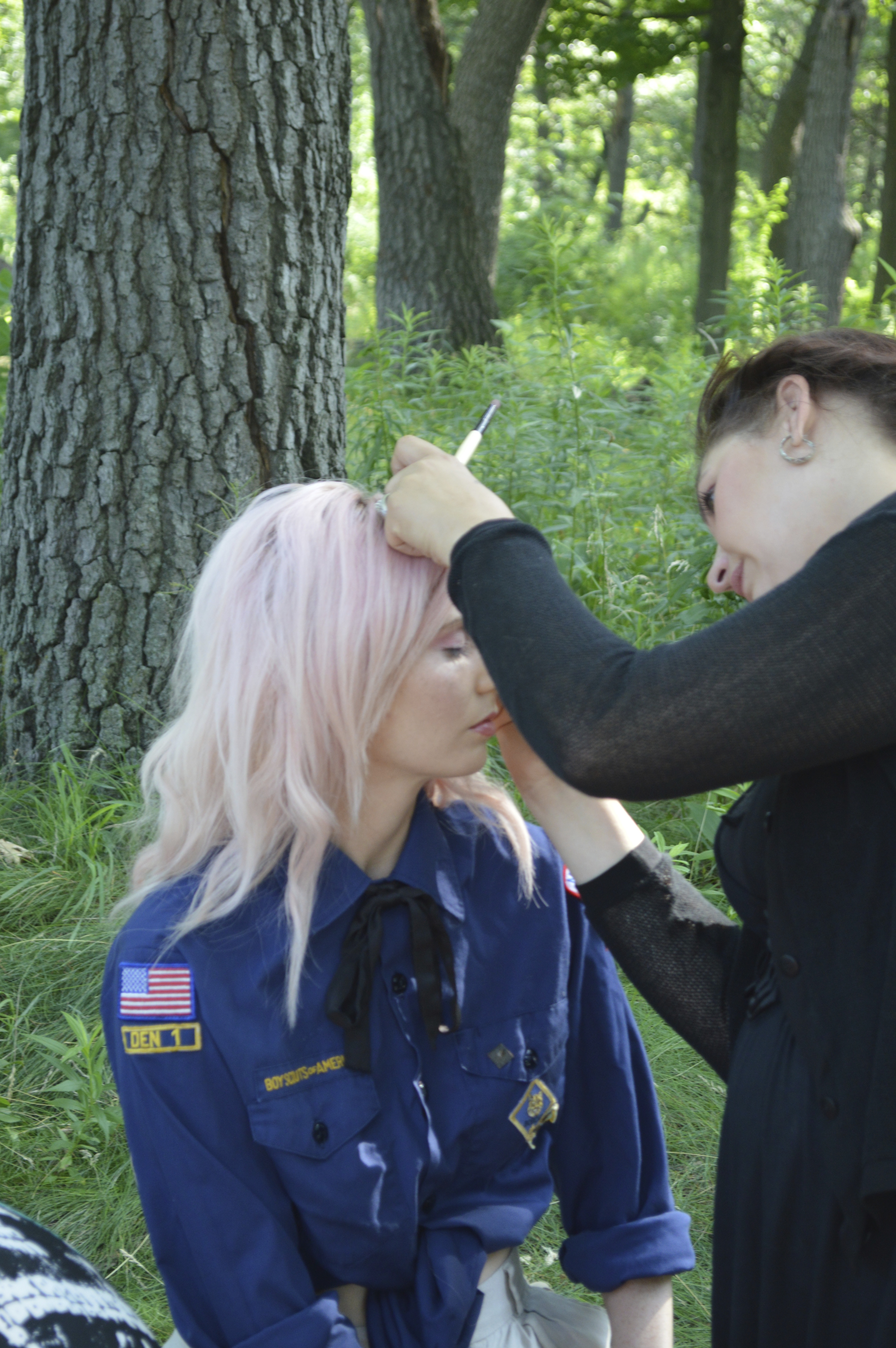 As I mentioned in my previous post, I spent the majority of Friday styling Audrey Kitching. Gerald found out he would be shooting her about one week and half before, so he got his regular team together (me and Leesa) and quickly planned a concept that ended up being so awesome! Audrey was a dream to style. Not only is she absolutely gorgeous, but she is so sweet and down to earth. I kept the whole thing a secret from everyone (except Meaghan and Ryan) until the day of the shoot, and it was pretty hilarious to see how excited some of my old pals from high school were about me getting to meet and work with her. She was a pretty big deal for scene kids back in the day and I had a ton of friends who loved her. She is obviously still very popular and I feel really and truly lucky to be able to say I got to put her in some of my gorgeous Larkspur garments and a darling floral matching set from Rosehound Apparel that I pulled from the lovely gals at Victoire (thanks ladies!). It was a beautiful day and perfect for shooting. I can’t wait until the photos are released. As you can see the concept was aviation and Gerald pulled out all the stops for it – including a giant model plane, a wicked airplane headpiece, flying bikes and an actual parachute from Leesa’s dad’s army days. This series is going to be a killer one, so keep a lookout for it!