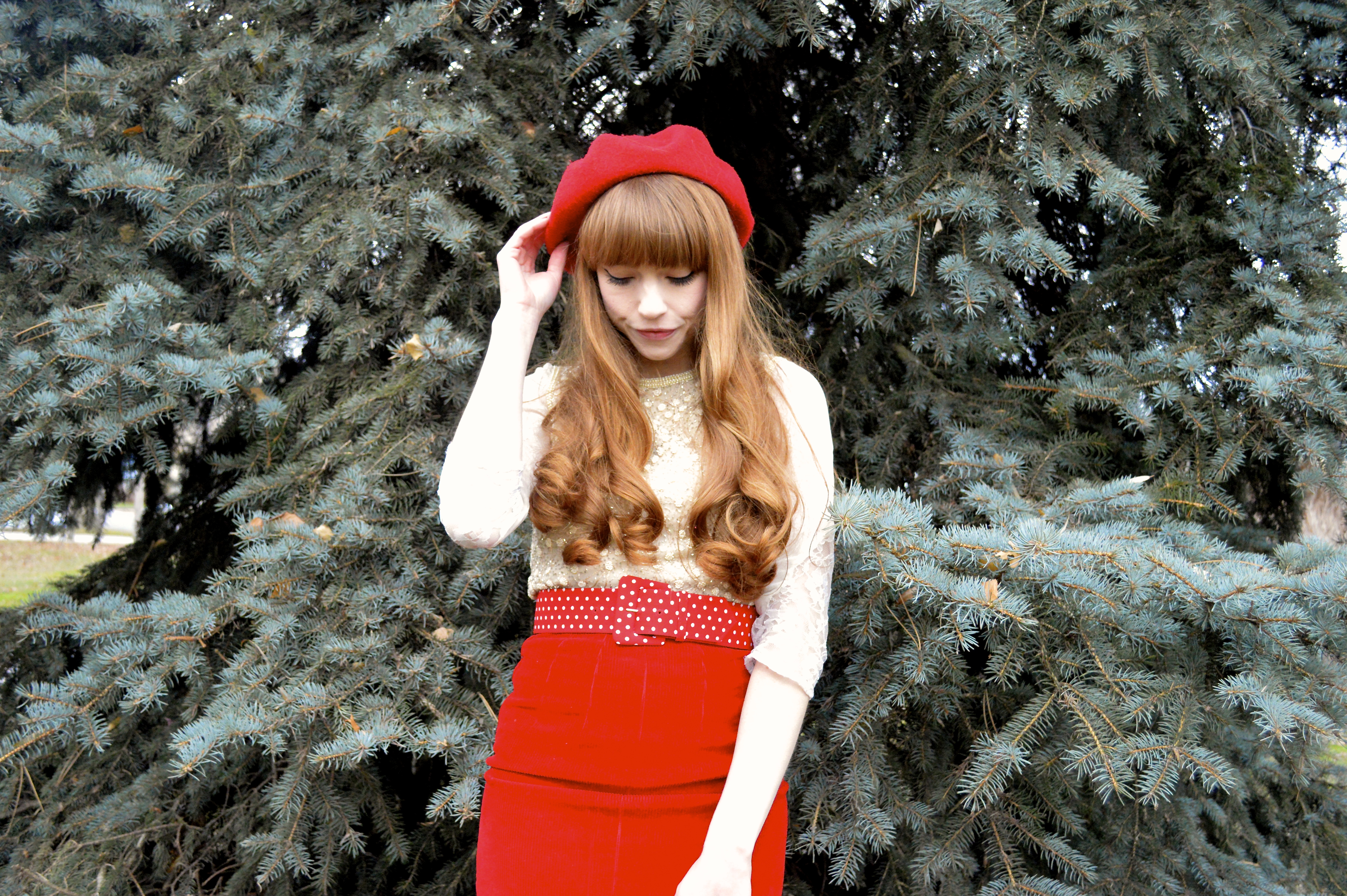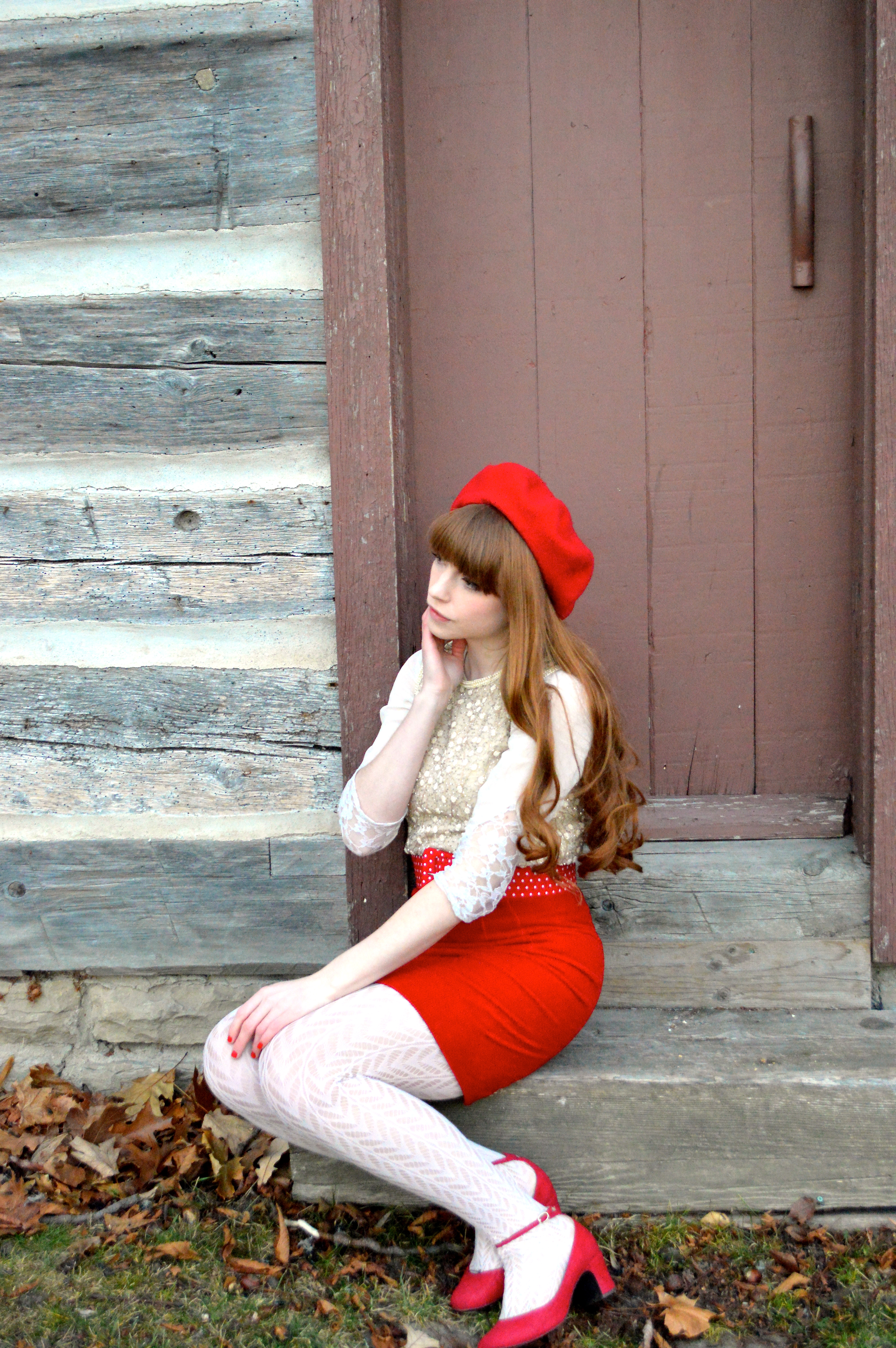 DSC_1753I thought since Christmas is right around the corner I’d put together a little holiday-inspired outfit. I feel like Mrs. Claus or a little elf, which is fun and fitting for the season. I likely won’t be wearing this outfit for the holidays, though. I don’t normally wear something that feels over the top Christmasy (red and white is just so obvious). Last year I had a lovely white chiffon dress and the year before it was a velvet emerald green shift dress. I’ve got, I think, the most perfect dress for the holidays this year, although I’ve had this dress since last February so I’ve become a little less enamored by it. I’ve got some Christmas shopping to do this evening, so I’m sure you’ll find me in one of my favorite vintage shops in between present-buying to see if I can find something I love. Vintage shops are the best place to find holiday dresses…you never know what you will come across and it’s usually bloody amazing.
