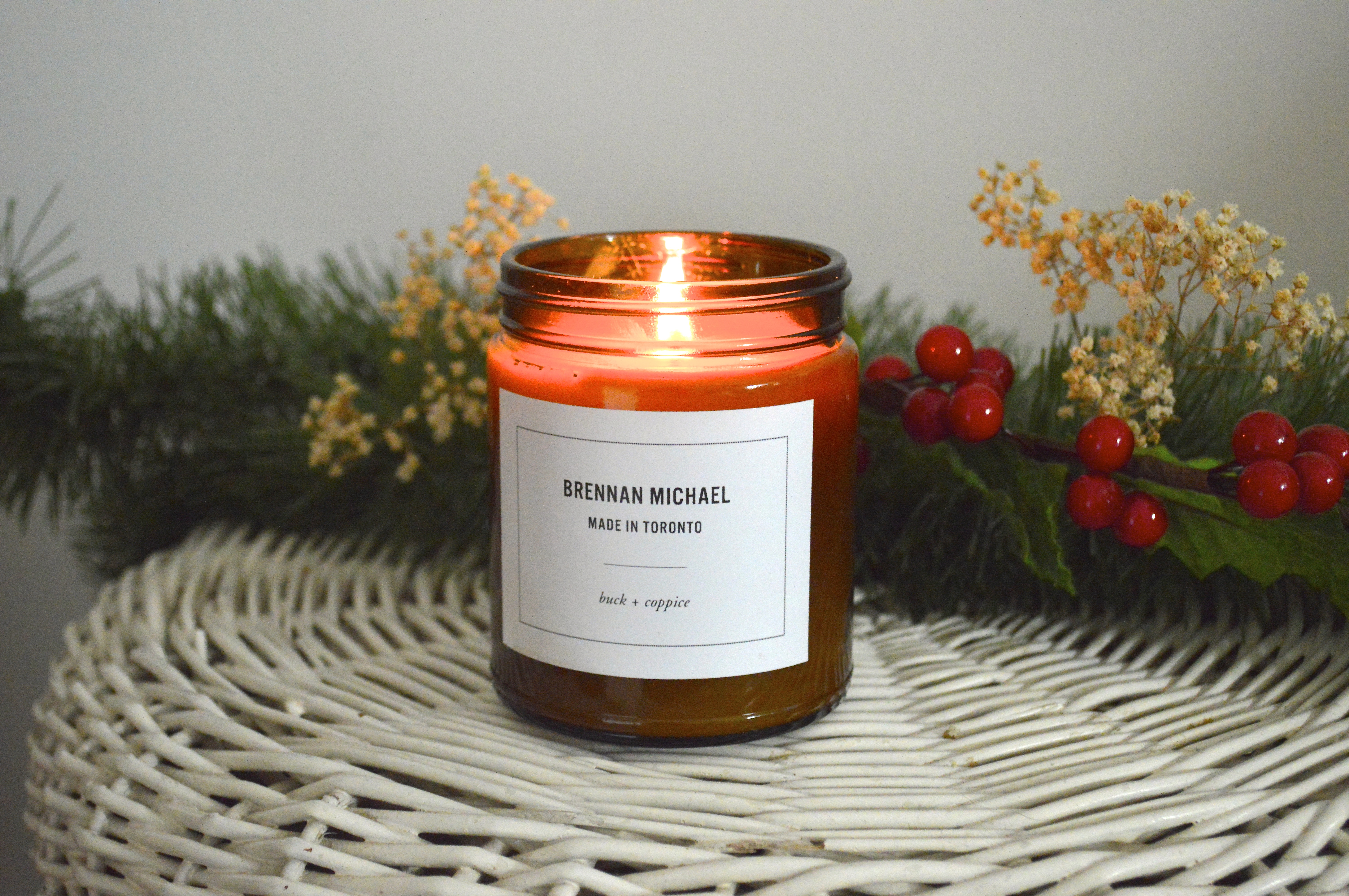 Brennan Michael is a new line of handmade candles made right here in Toronto. They have just released their first scent, buck + coppice which I can honestly say smells amazing. It’s the perfect candle for these cold days spent indoors. Brennan is an old pal of mine – I met him when I first moved to Toronto around 7 years ago. While we haven’t kept in touch very well, he did reach out to me when he had released his first scent to see if I’d like to give it a try. Of course I said a big ol’ yes and thought it would be fun to style the candle for some holiday-esque photos.