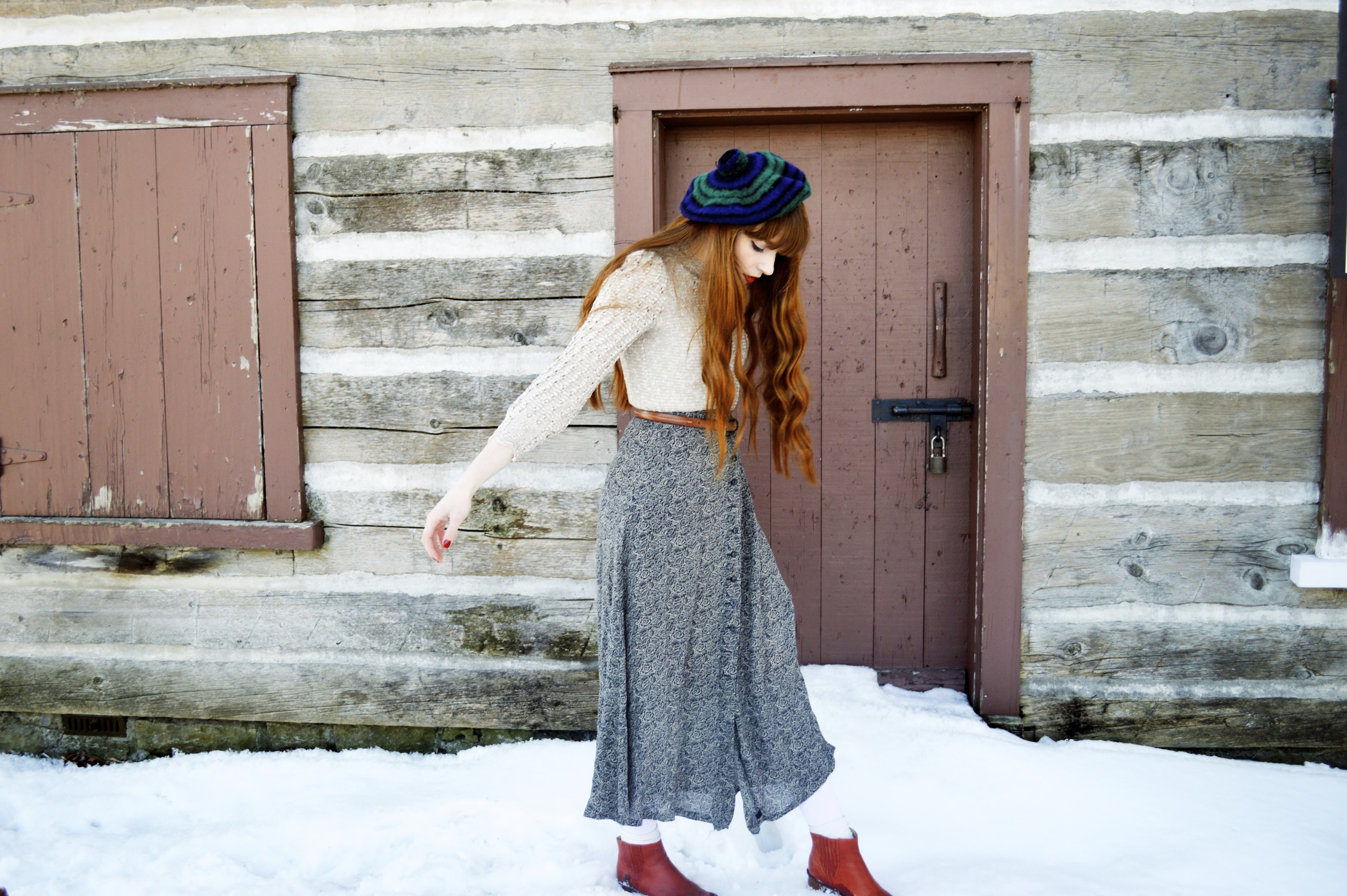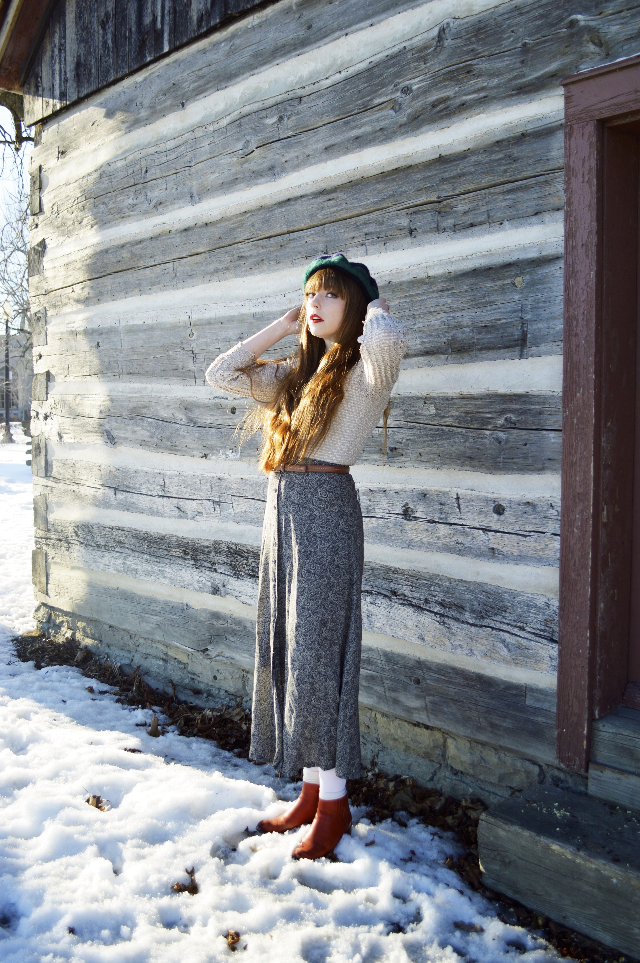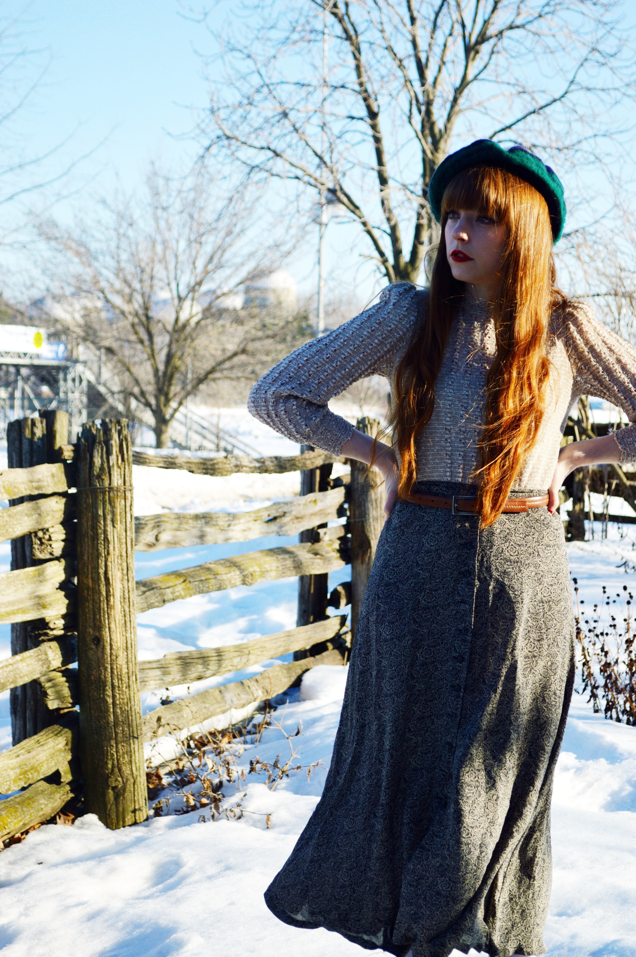 You look so pretty. I’m really in love with the hat you’re wearing here! The dress you’re wearing as a top looks super cozy too!
