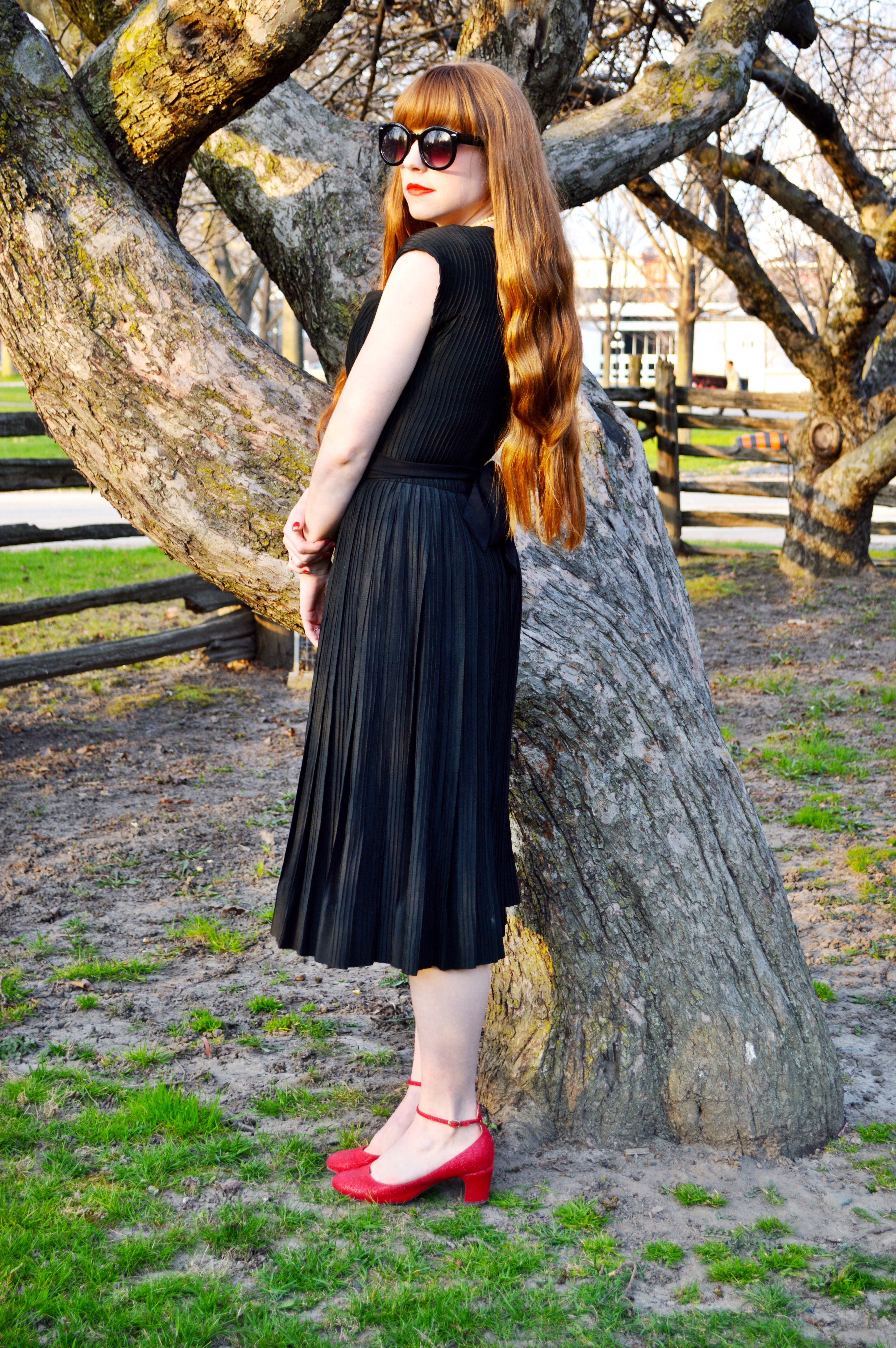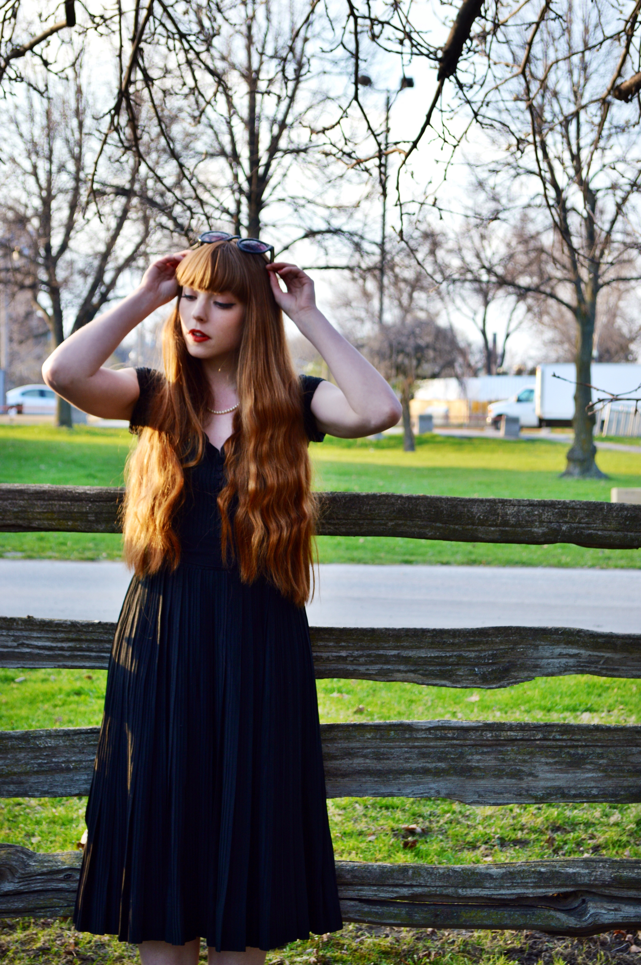 After editing these photos, I’m now totally seeing what all the fuss was about with that black and blue (or white and gold, whatever) dress “issue”. Black, what a chameleon! Depending on where I was standing and where the sun hit my dress, this totally – and I mean completely – black dress from Three Little Waves looked golden and at other times almost completely blue. Anyways, all that aside, I love this dress, as I love all things I have received from Ellen of Three Little Waves. If you can believe it, before this dress, I didn’t really own a simple black dress. I have a tendency to overlook anything black when I’m in a store – it all just kind of blends together in a heap of boringness – but when I saw this dress, I knew it was just the right amount of simple with some fun detailing that it would end up being that LBD I didn’t know I wanted until I came across it.
