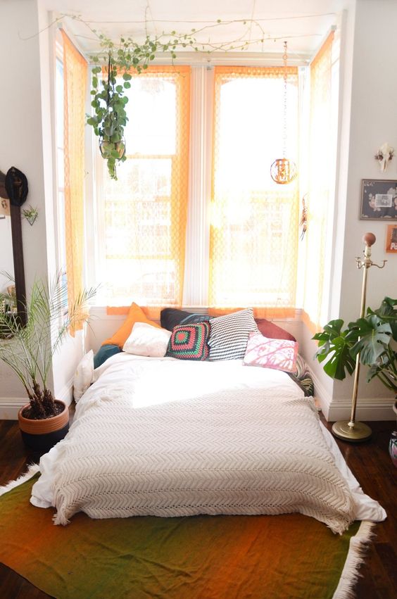 Anyways, all this to say, I have a Pinterest board, EVERGLADES (the name of my apartment building), dedicated to decorating ideas and I thought I’d share that with you. Please let me know if you have a home decorating Pinterest board I could check out, or pictures of your own home that is awesome! I love finding new ideas and boards to follow.db2cc7a2efadb793b086dbf2868f64f634072eb2e7fac533da1fd632f713b7d5088d8c40ae9b4e2fd7536b226f702569I’ve been looking at different types of shelving and storage units, many of which are pretty DIY. As you can see in my above images, I have books stacked on the floor and windowsill, which I like, but wouldn’t it be cool to actually make shelves out of those books? Or make my own book shelf by stacking old wooden crates together? And how nice is it to have plants hanging off and picture frames resting on shelves?!It’s no surprise that I love pink, especially blush pink, so it makes sense these images spoke to me. Don’t these spaces look so beautiful all white with accents of blush pink?I don’t have traditional side tables next to my bed – right now I have a white wicker stool and a milk crate with lace draped over top…very DIY looking. My bed is also on the floor since I don’t have a bed frame, so I like the look of these low beds with books used as side tables, frames resting on the floor against a wall and little frames staggered low on the wall right above a side table.Hanging plants from the ceiling just looks so damn good!These kitchens look so great with these shelves filled with colourful dish and house wares.I just really like the look of these rooms, probably for their colour combinations and coziness. I’d like to pop right into the images, thank you.