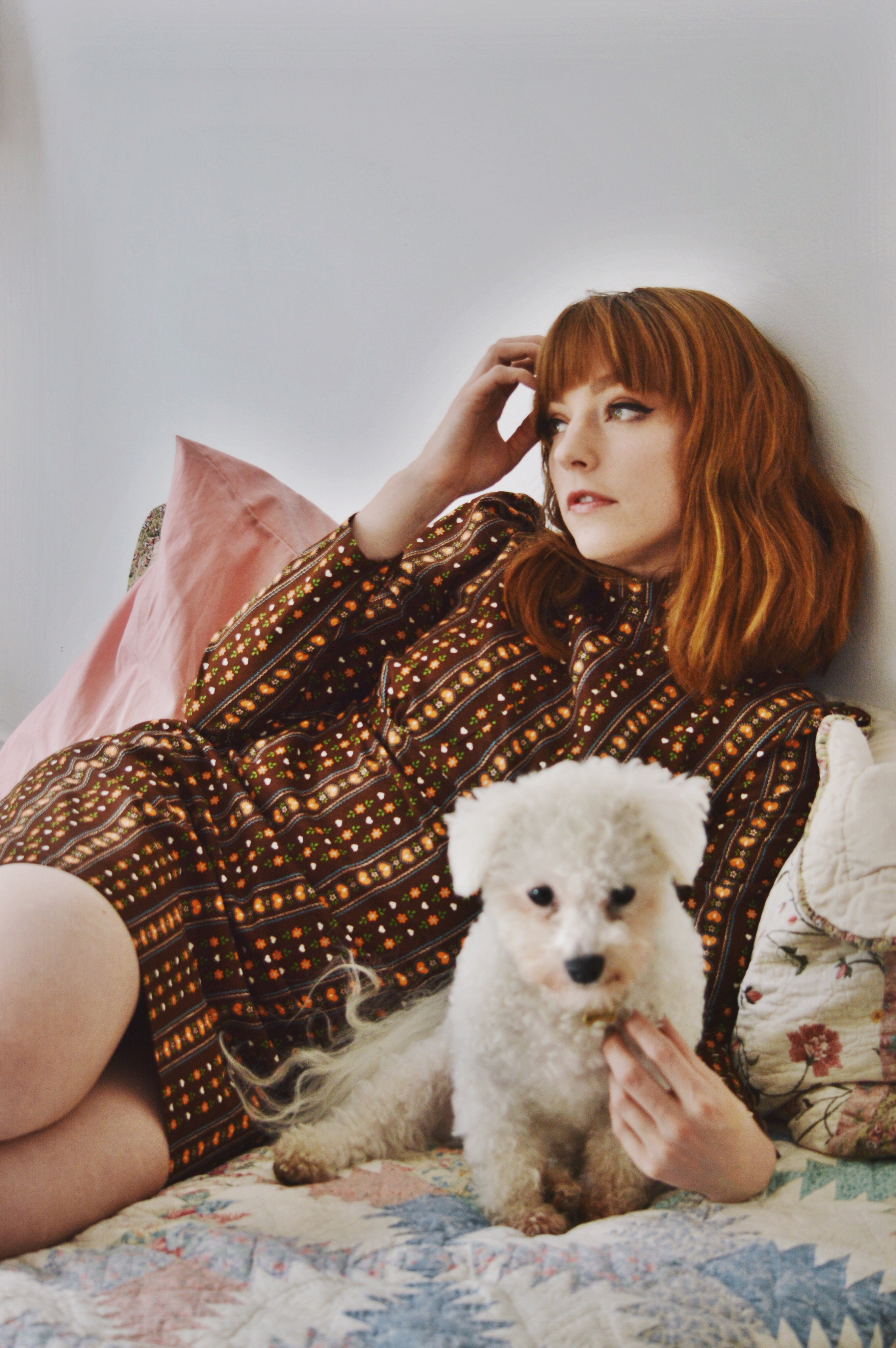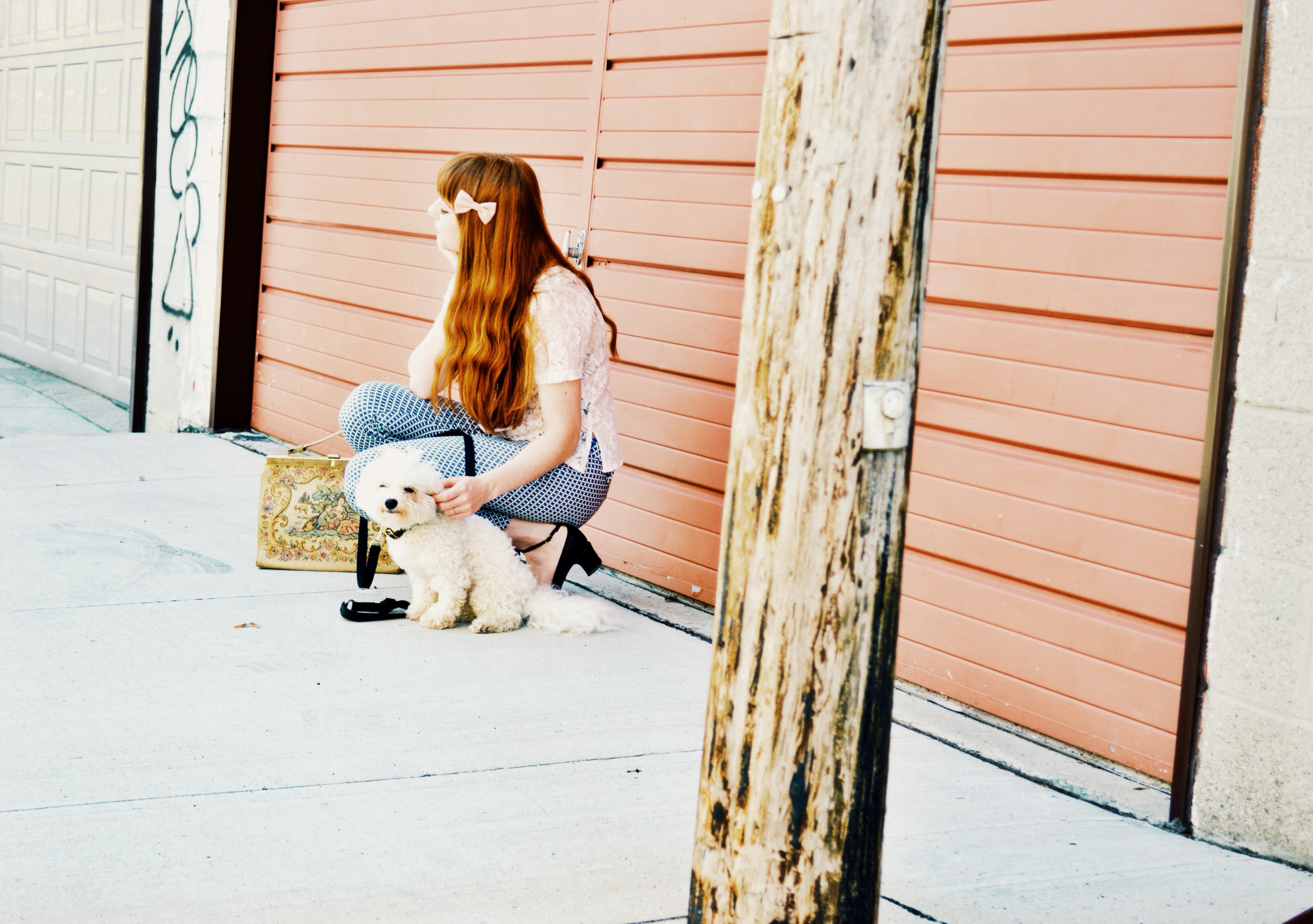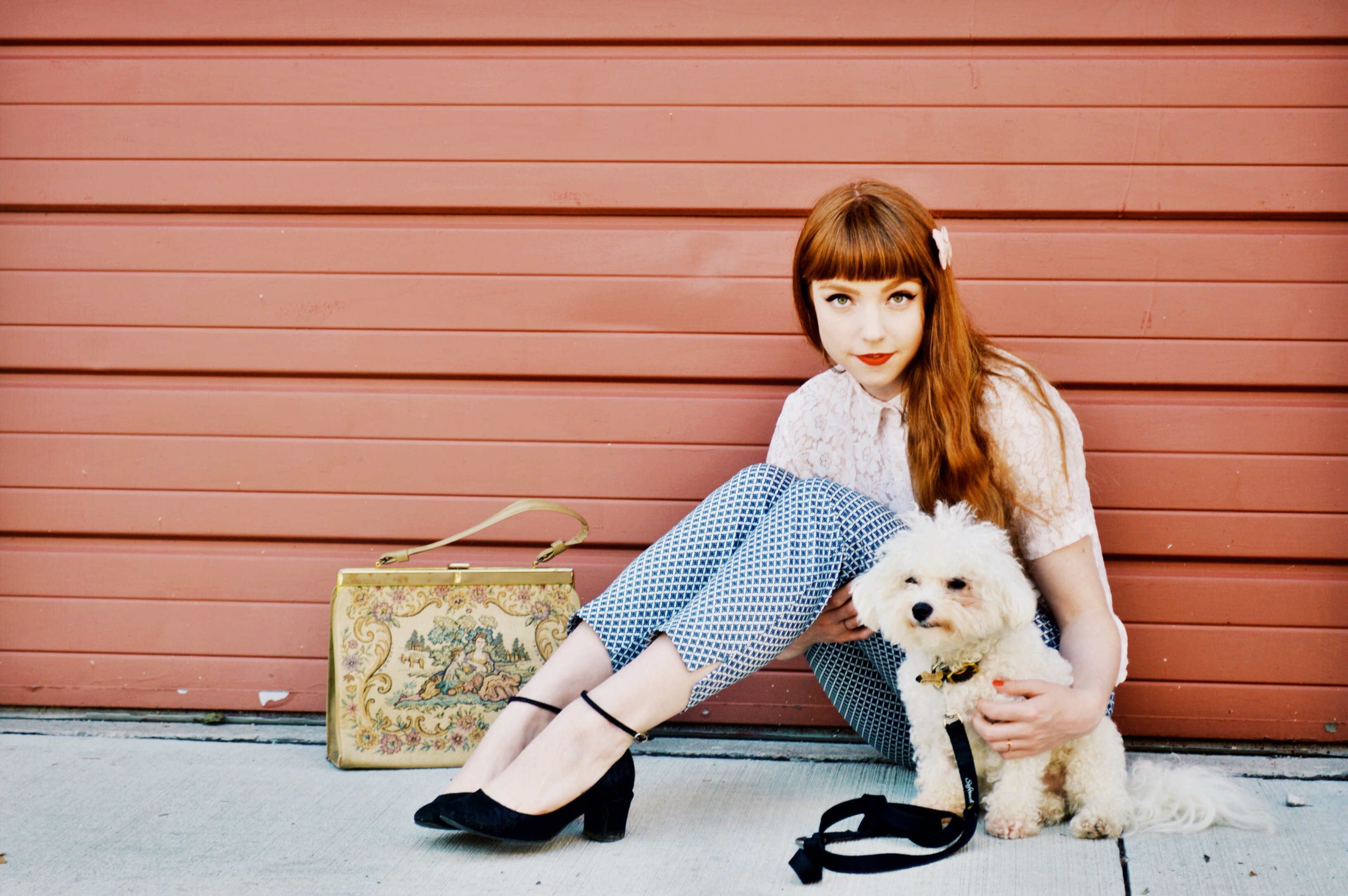 Having a deaf dog does have it’s share of challenges; it’s far harder to train a deaf dog, eye contact and hand signals are your only form of communication, and being unable to call to them when they are out of sight can be a bit annoying, if not kind of stressful. Honestly, it’s never been that much of a problem in my life. There are not many instances where I wish Gus could hear, the only ones are when we are spending a great deal of time outdoors, he’s off leash and I need to keep on an eye on him in case his nose leads him astray. He’s never been the type of dog to run away off leash – I trust him wholly in that respect – but his sense of smell leads him to wander and that’s when I wish he was able to hear. So naturally, I have never actually done outfit photos on my own with Gus and I. Any time Gus has been featured with me in photos, it’s because someone else has taken them. When I’m taking my own outfit photos, I’m pretty focused on what I’m doing, so having Gus wandering around me off-leash and sniffing his surroundings while my attention is elsewhere seems pretty unsafe for him. But my relationship with Gus has changed quite a bit since his back surgery and since being left to look after him on my own. I bring Gus with me to a lot more places now so he’s never alone for too long and since he’s a bit slower than he used to be because his back legs aren’t in the best shape, I’m less worried about him getting too far ahead of me off leash. Building a bond with a dog can take awhile, I think. Gus and I were bonded pretty quickly, mostly in the sense that he knew I was his person and he wanted to be around me all the time, but it definitely took awhile for Gus to understand what I expected of him and for me to learn his little quirks and what situations he is good or bad in. All this to say, a year ago, I probably wouldn’t have tried to take photos with just Gus and I, but it felt right this time around, and my intuition didn’t steer me wrong. He stuck by me most of the time, and if I did notice him wandering off it was pretty easy to catch up to him and bring him back. I feel lucky to have such a funny and easy going dog. Obviously everyone is biased when it comes to their dog, but I really believe I got pretty damn lucky when this little cloud showed up in my life.
