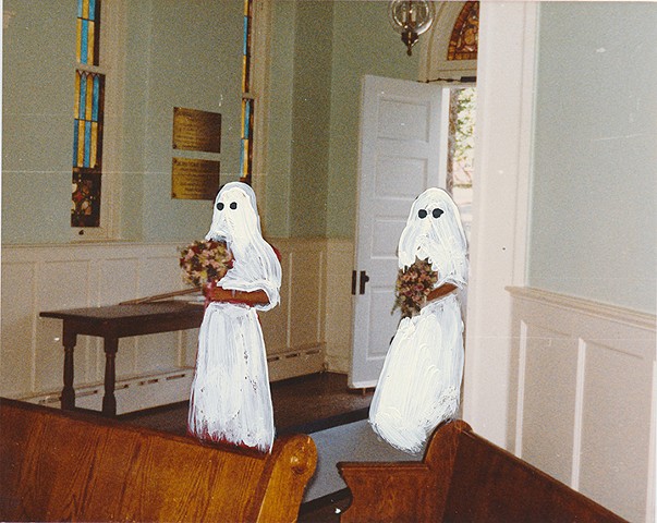 Halloween is right around the corner, and to get into the spirit (no pun intended), I thought I’d share these images by artist, Angela Deane, of her hand painted generic ghosts on found photographs. While the ghosts are actually quite adorable, there is an undeniably haunting quality to Angela’s work. And with the images being film and polaroids, there is a feeling of nostalgia which only emphasizes the spooky notions these images conjure. Such a simple idea, and yet so striking and original. I’m an instant fan, and these images are getting me excited for the spooky Halloween shoot Ryan and I have planned.