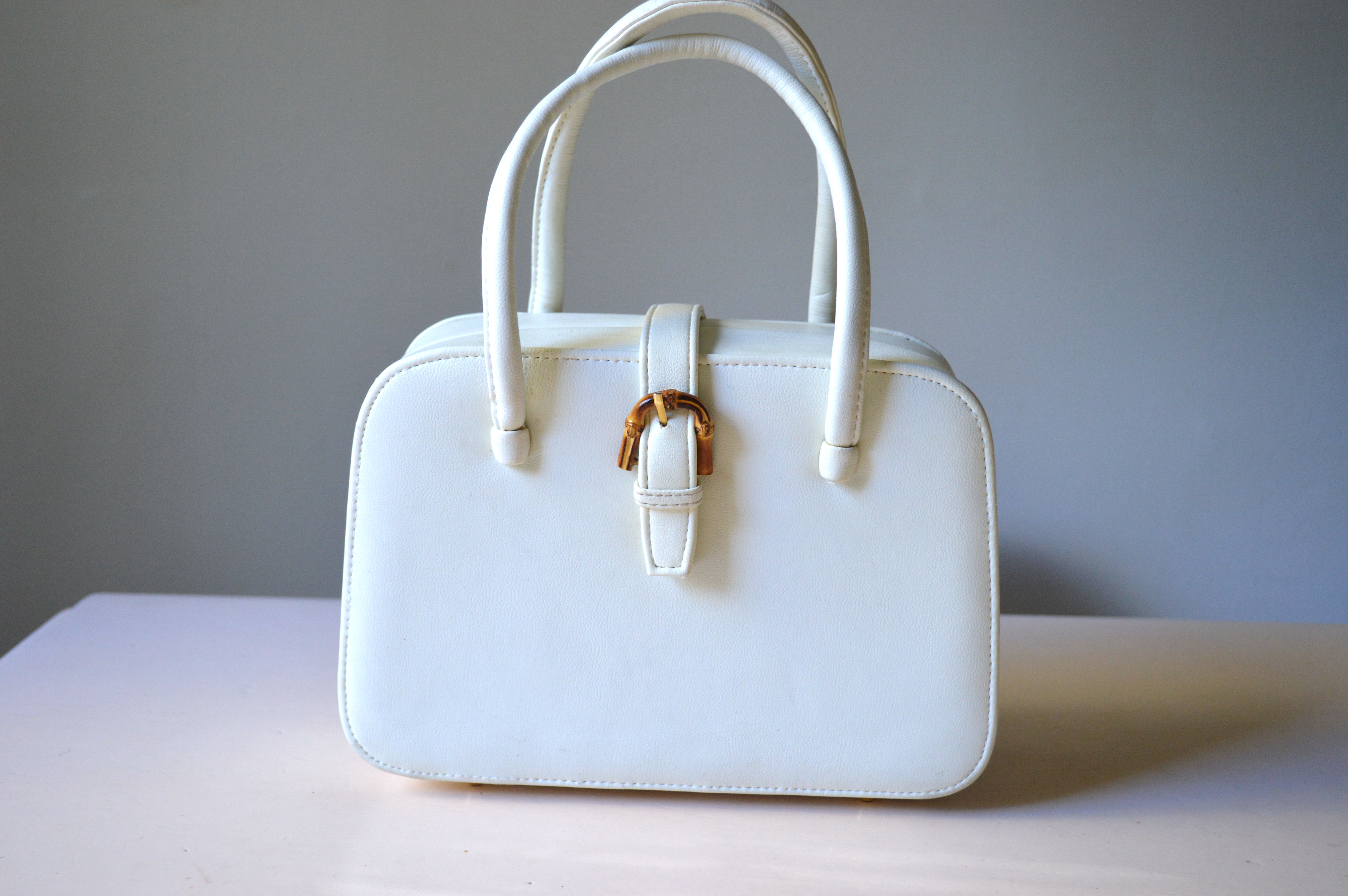 1980’s Ivory Faux Leather Purse with Bow Detail