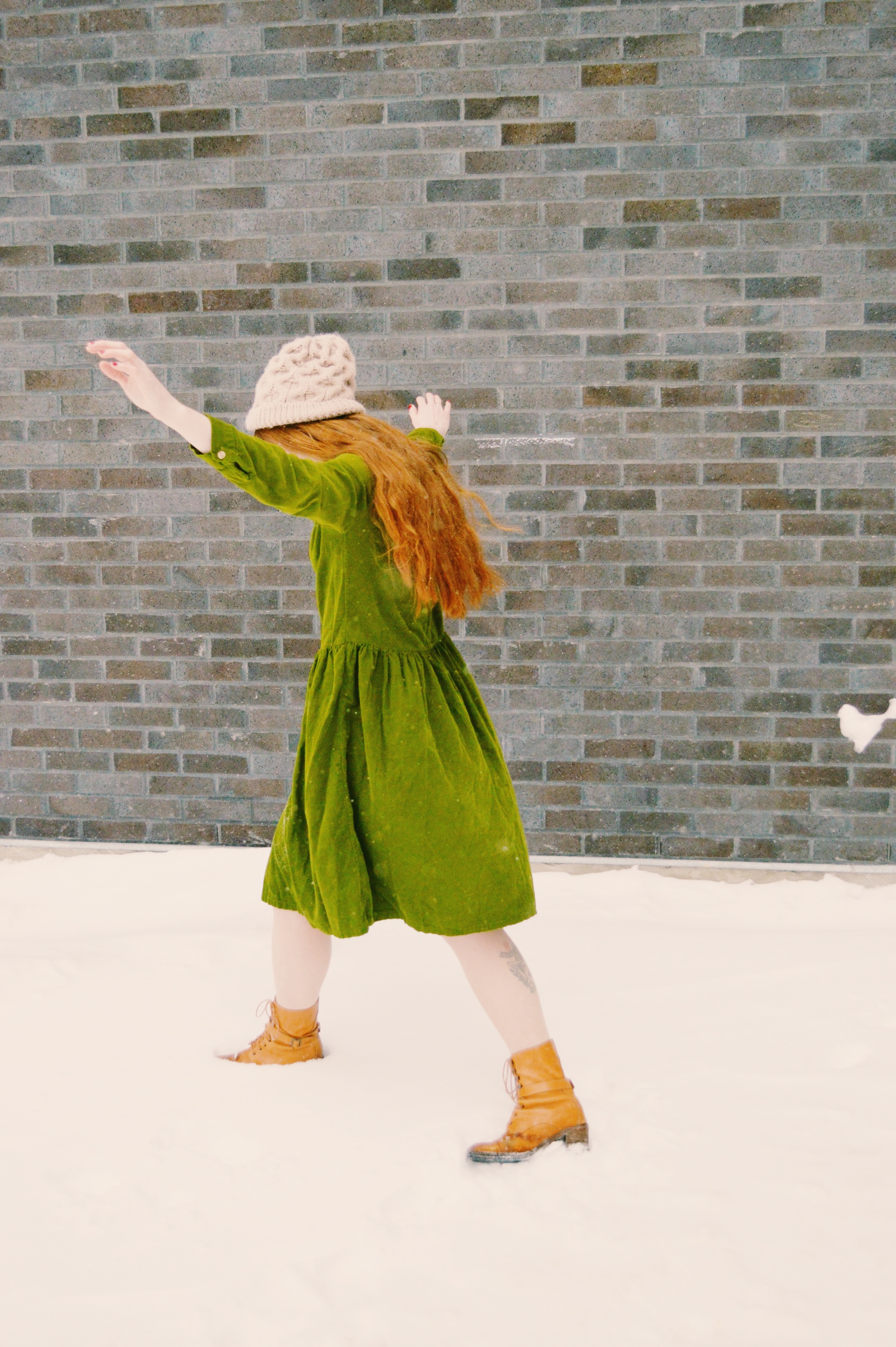 Sweater: thrited | Skirt: Common Sort | Coat: thrifted H&M | Scarf: vintage | Toque & mitts: H&M | Tights: ballet tights | Boots: Samantha Pleet x Wolverine