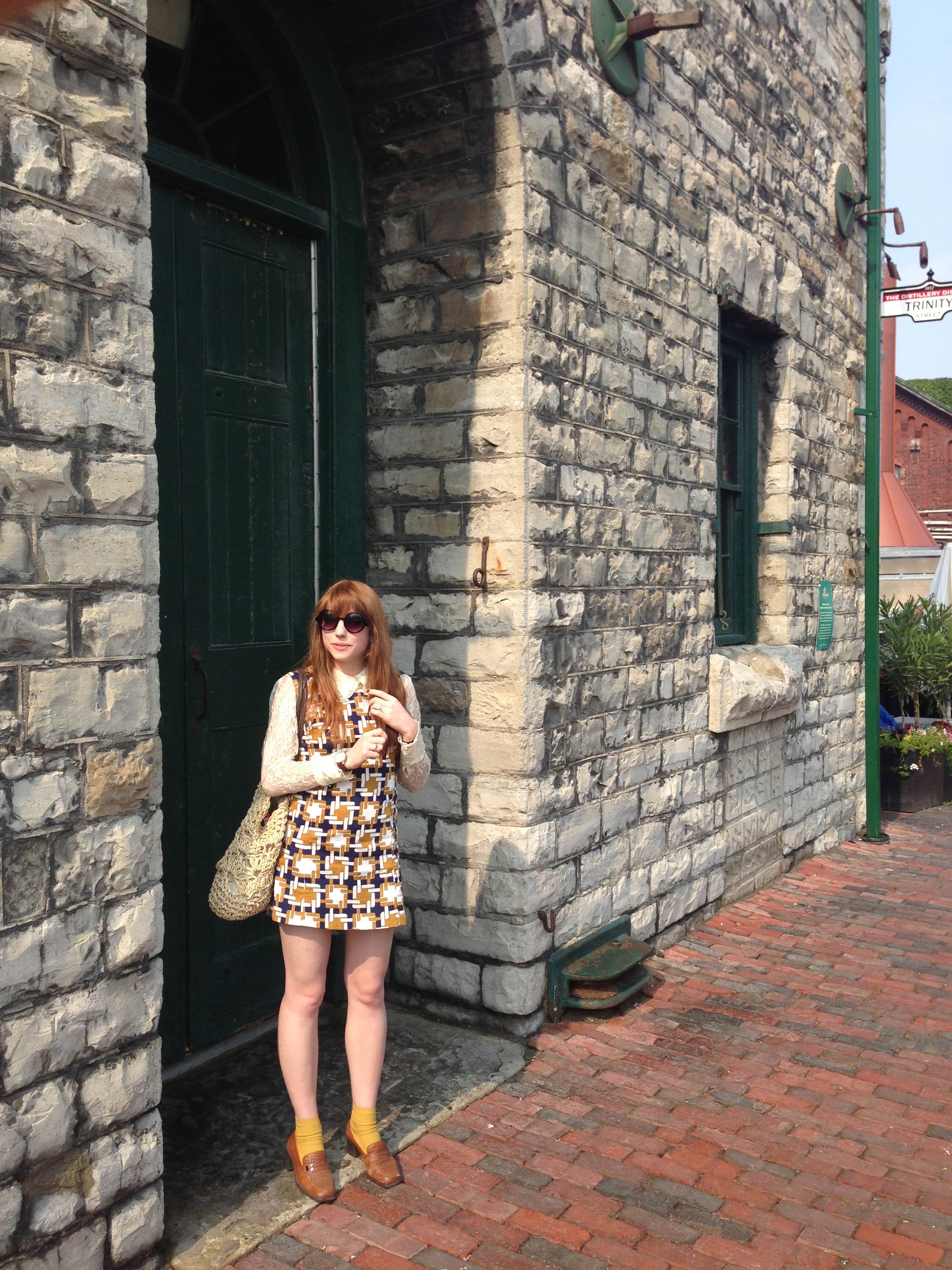 shift dress; 69 Vintage, blouse/shoes; thifted, socks; UO, sunglasses; Philistine