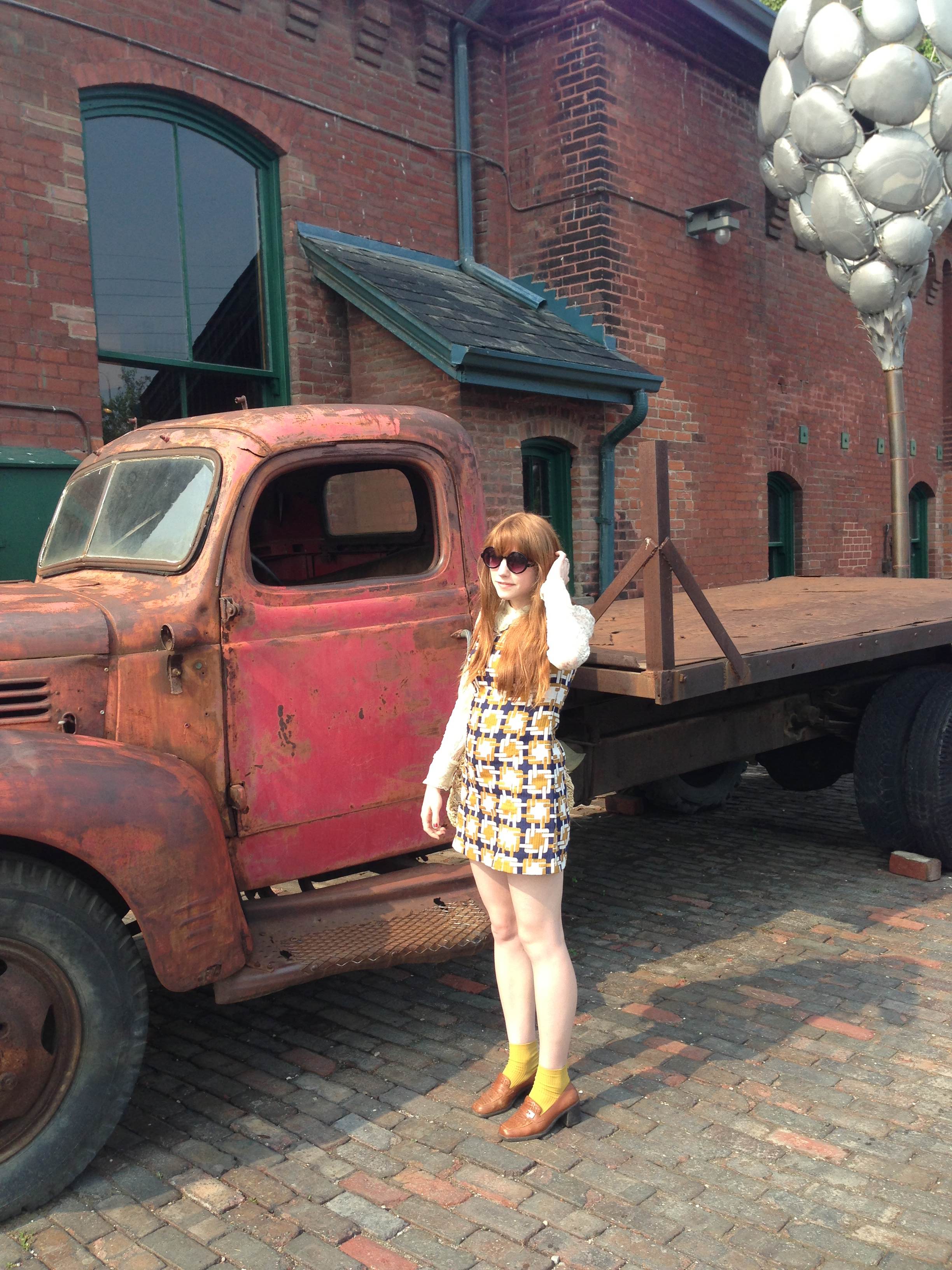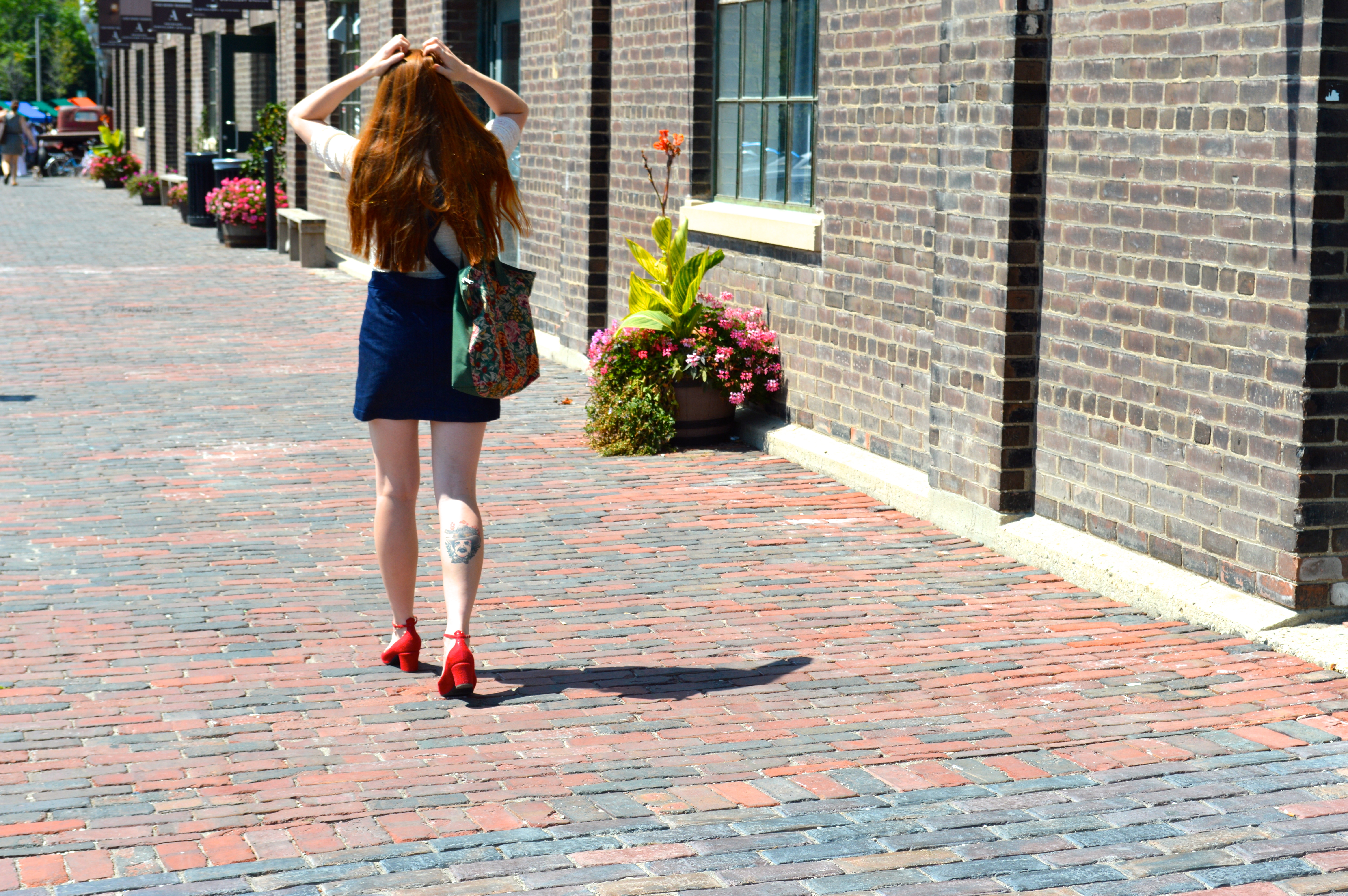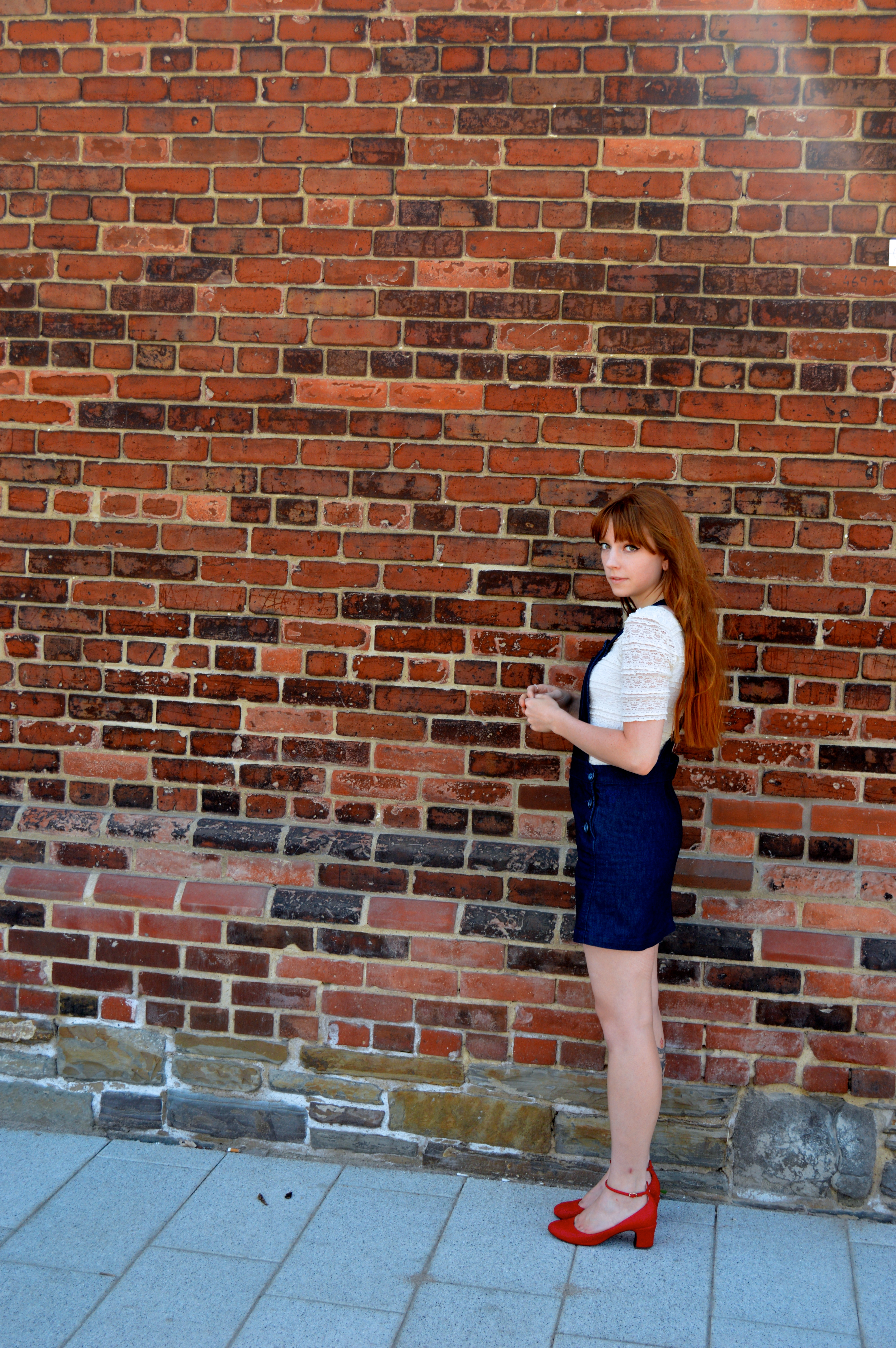 Sometimes the thrifting gods shine down on you and you find a piece that is in brand spanking new condition and fits you almost perfectly. That’s what this overalls/pinafore/jumper was for me. I generally thrift only for the shop, but when I find a piece that is not vintage but suits my taste, I pick it up for myself. And save for the few times it needed adjusting while out and about (pinafores tend not to stay in one place, and the skirt likes to hike up a bit – eep!), it’s one of my favourite things in my closet right now. After Gertie’s passing, I’m going to be honest, it was hard for me to care even slightly about the way I looked. I left the house very little, and when I did it was a ‘no make up, normcore’ situation. Which is fine on others, but it’s just not for me. One of the best things I could do for myself was do my usual makeup routine and wear things that made me feel good, and leave the house, even if it was for a short period of time. Clothing has a way of making you feel better, a way of making you feel like everything is normal. And during times of grieving, life can often feel like you are just passing through it, completely unmindful. But clothes can make you feel a part of it all – “I feel like shit, but gosh, you would never know, cause I’m wearing this sassy pinafore and my shoes are RED, and we are discussing the relationship between Beyonce and Jay-Z, which I normally wouldn’t care about, but it is a mindless subject” But I digress… I won’t pretend every day gets easier when you lose someone you love. Everyday is just different – some harder than others. Keeping my mind focused on my art, on the loves in my life that are still here, and on the clothes that bring a smile to my face are just a few of the ways I keep myself feeling like me.