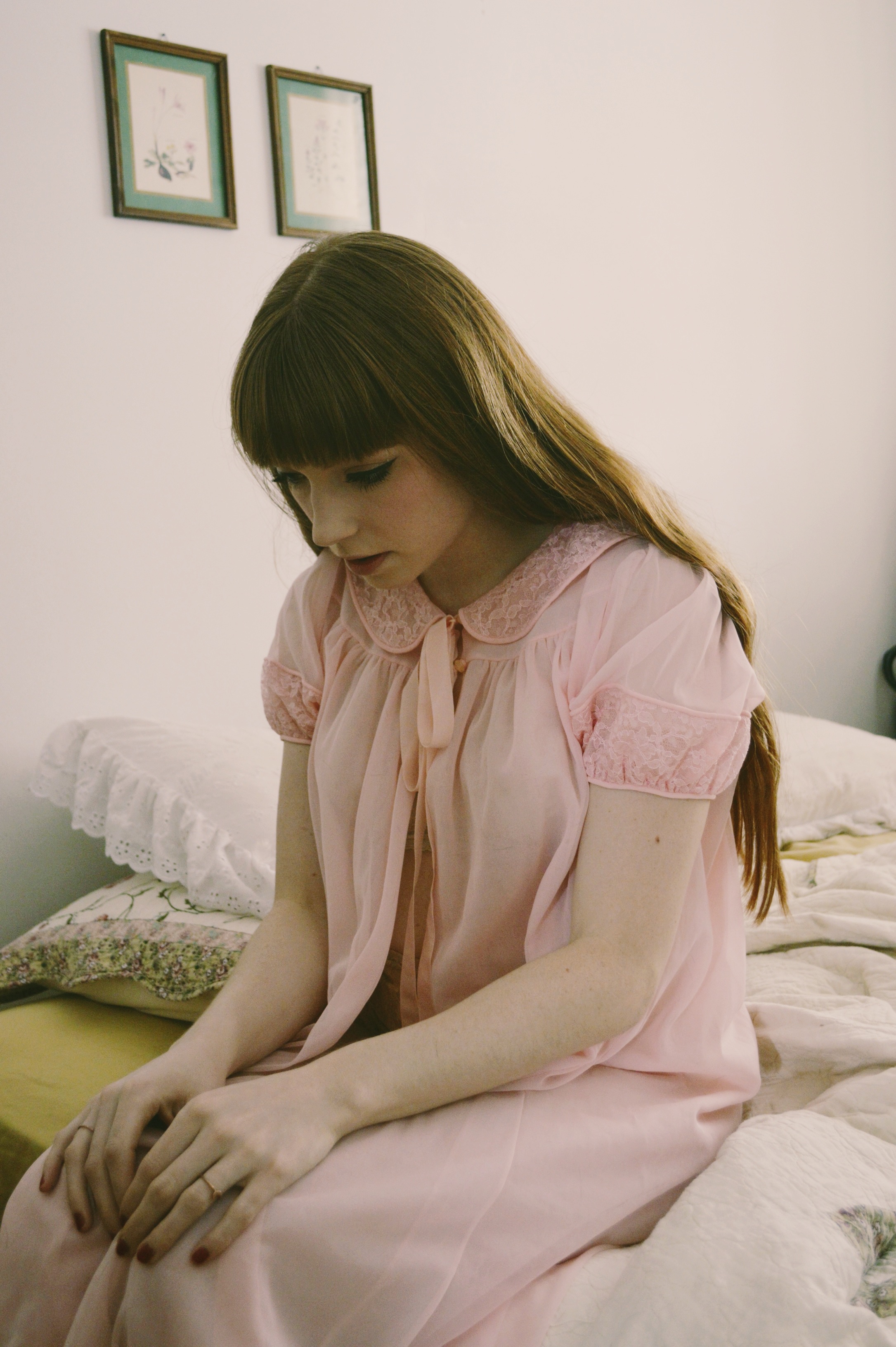 It’s no secret I’m a vintage negligee, lingerie and loungewear enthusiast, so when Nikki of Meraki Vintage sent me this adorable powder pink dressing gown to add to my already booming collection, I was over the moon. While these garments may feel rather impractical in that their purpose is mostly to remain indoors (I have styled a nightgown for outdoor wear though), they are still pieces that feel very important in my closet. Wearing something at home that feels both pretty and comfortable is a must for me. I’m a homebody through and through, and I often feel no desire to get dressed in my outdoor garb if I’m just going to be sitting around the house all day, so these pieces are the perfect option that make me feel less like a frumpy lazy butt, and more like an adorable lazy butt.